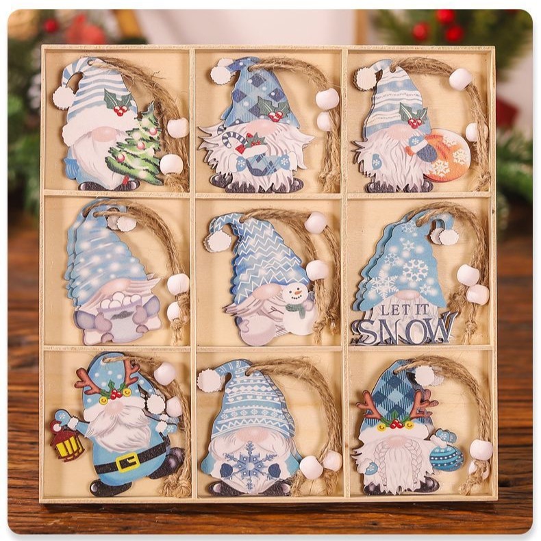 Set 18 Decorațiuni de Crăciun din Lemn - Gnomi Diferiți