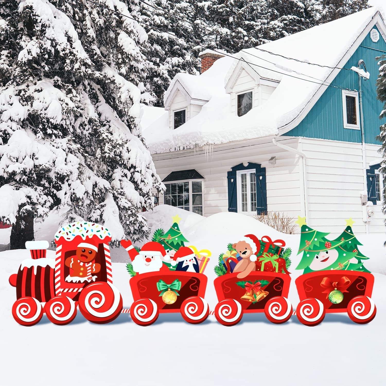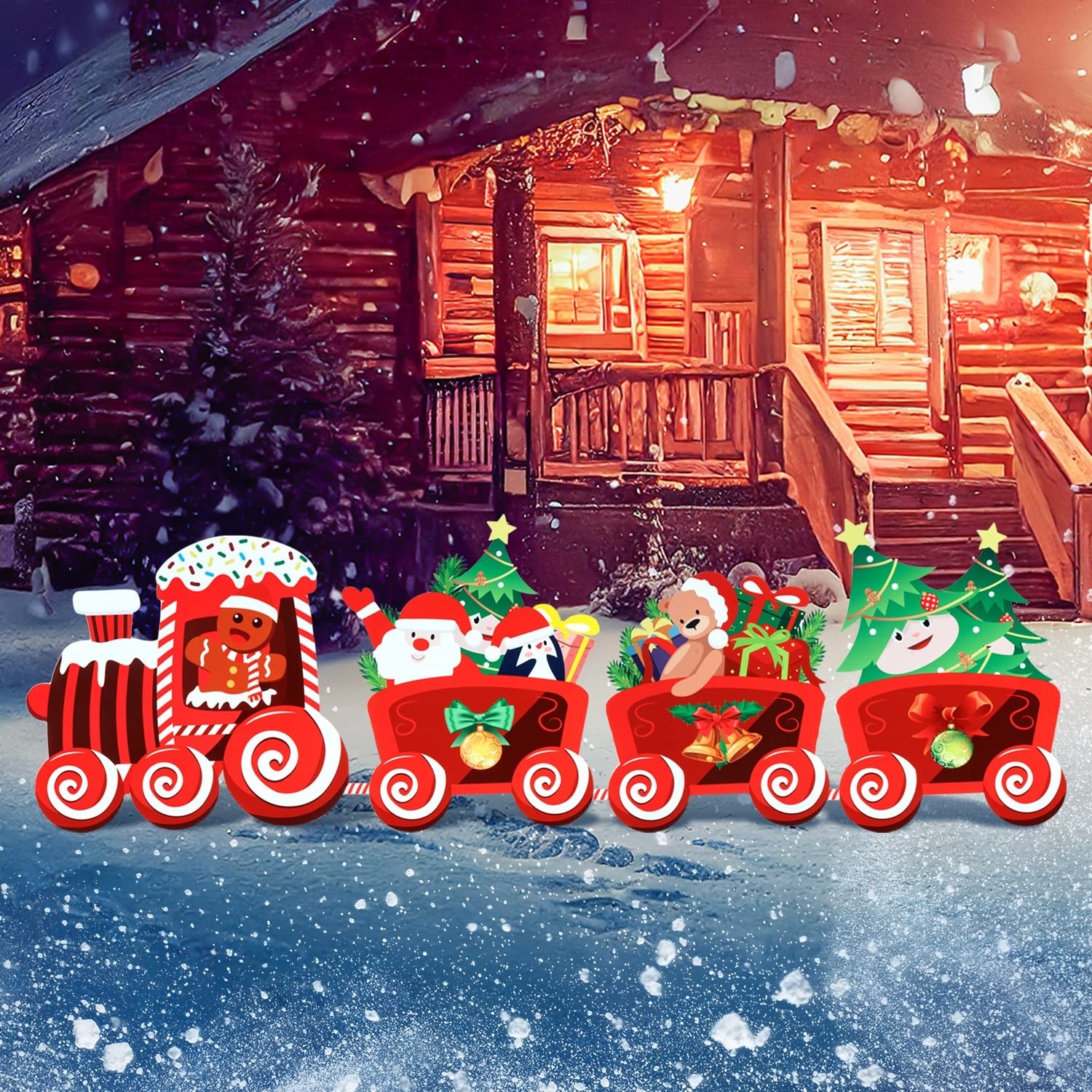 Decorațiunea pentru grădină aduce spiritul festiv direct în curtea ta, sub forma unui trenuleț cu tematica de iarna. Concepută pentru a rezista condițiilor de exterior, această piesă multicoloră este ideală pentru a transforma orice spațiu într-un colț de poveste de sărbători.