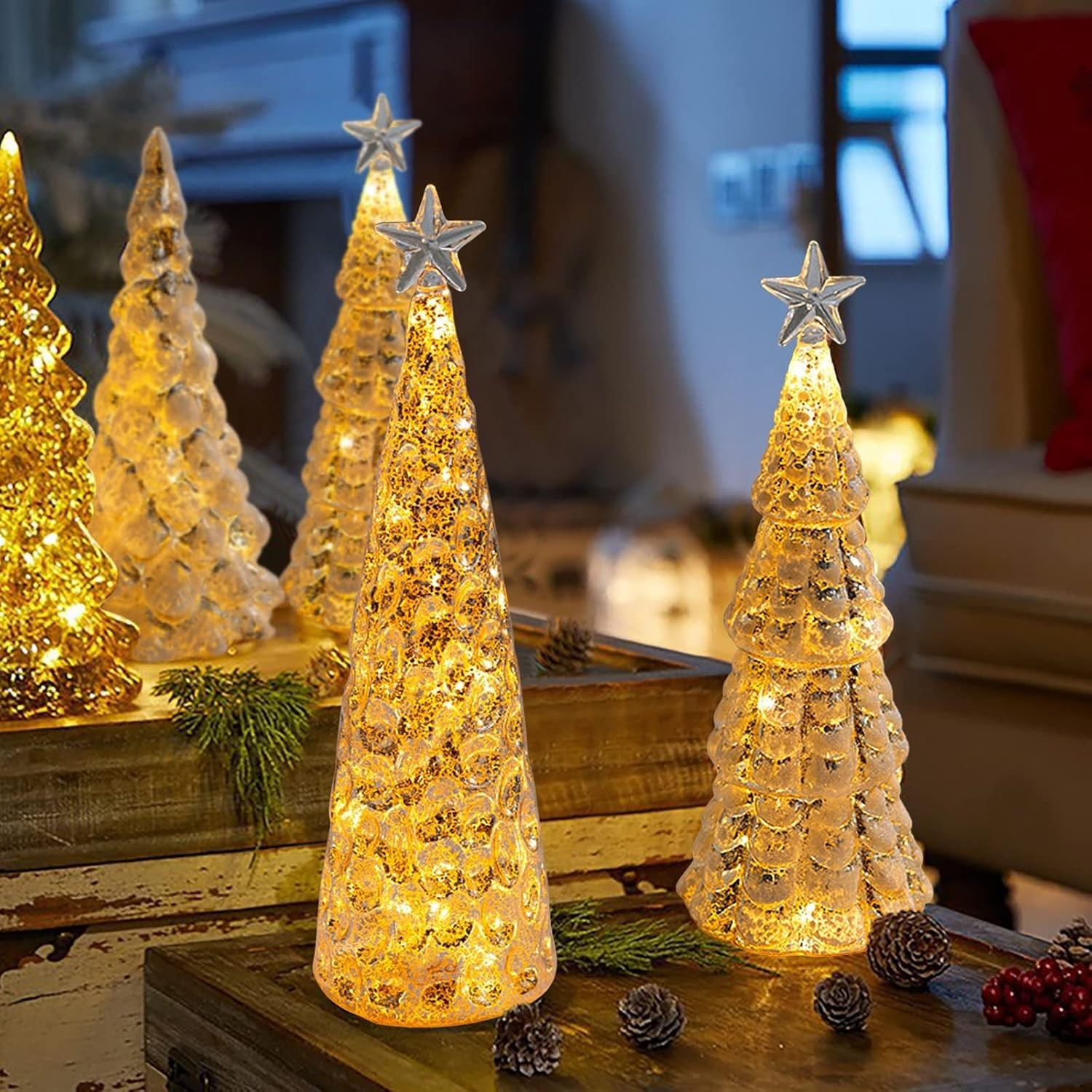 Adaugă eleganță și magie sărbătorilor cu această decorațiune luminoasă în formă de brad cu stea, realizată din sticlă și iluminată discret pentru a crea o atmosferă caldă și festivă în orice încăpere.