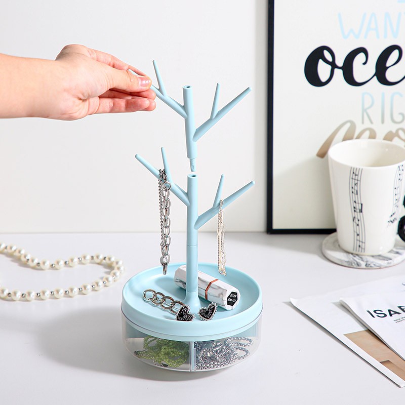 Cutie de Bijuterii, Rotativă, cu Suport Tip Ramură, 36.5 x 14 cm, din ABS+PP, Albastru