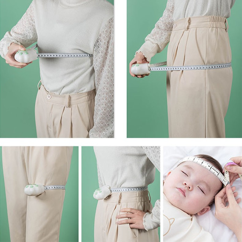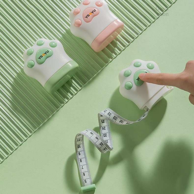Ruleta Portabila, Ruleta mini pentru Copii, Model Labuta de Pisica, cu Prindere, pentru Masurat Diametrul, 5.5 x 6.5 cm, Banda 1.5m