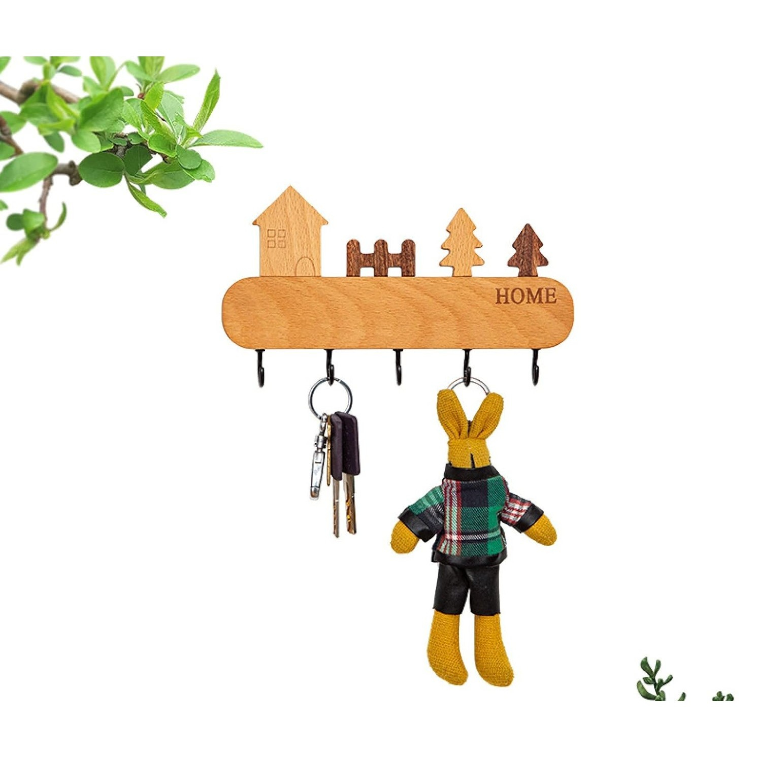 Adaugă un element practic și estetic locuinței tale cu suportul pentru chei. Fabricat din lemn natural, acest cuier compact oferă 5 cârlige robuste și o instalare ușoară, fără a necesita perforarea pereților.