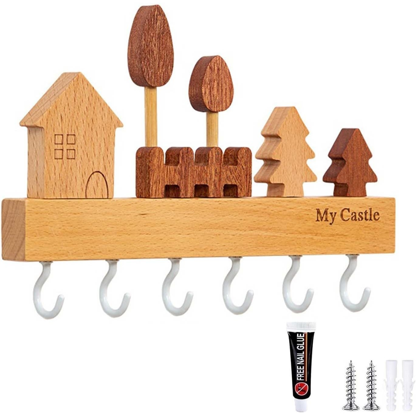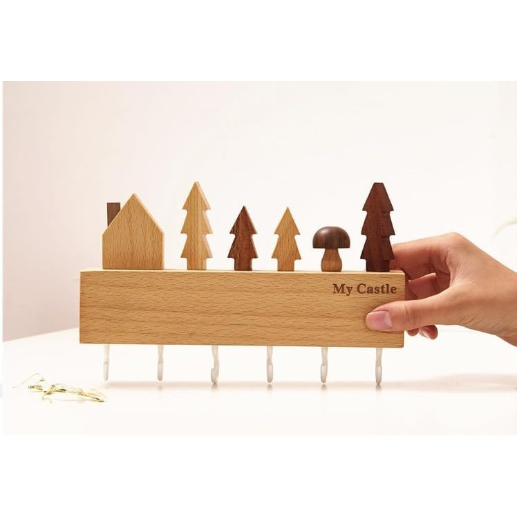 Adaugă un element practic și estetic locuinței tale cu suportul pentru chei. Fabricat din lemn natural, acest cuier compact oferă 6 cârlige robuste și o instalare ușoară, fără a necesita perforarea pereților.