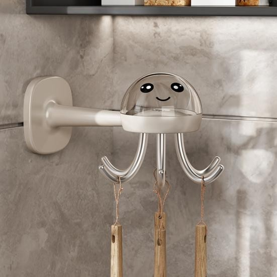 Suport Cuier pentru Perete Model Caracatiță, Adeziv, 10 x 8.5 cm, 6 Brate