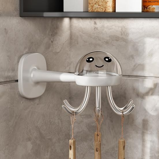Suport Cuier pentru Perete Model Caracatiță, Adeziv, 10 x 8.5 cm, 6 Brate