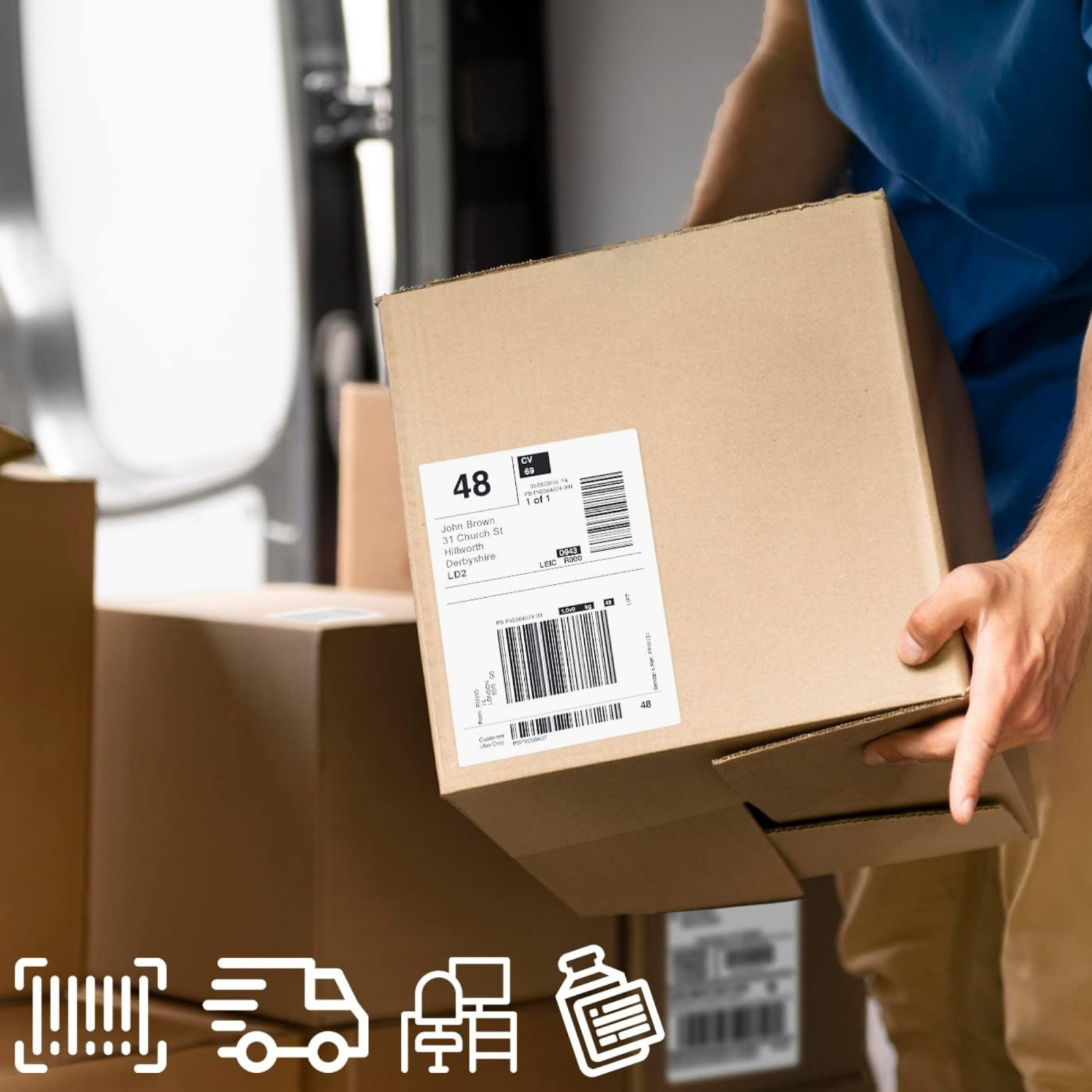 Aplicatii diverse: Ideal pentru etichetarea coletelor, paletilor, documentelor, produselor si pentru utilizare in sistemele de management al stocurilor si al expedierilor.
