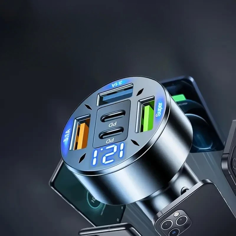 Continut Pachet: Incarcator Auto 5 in 1, Flippy, 3 x Port USB Fast Charge QC3.1 si 2 x Type C, PD 65W, Negru