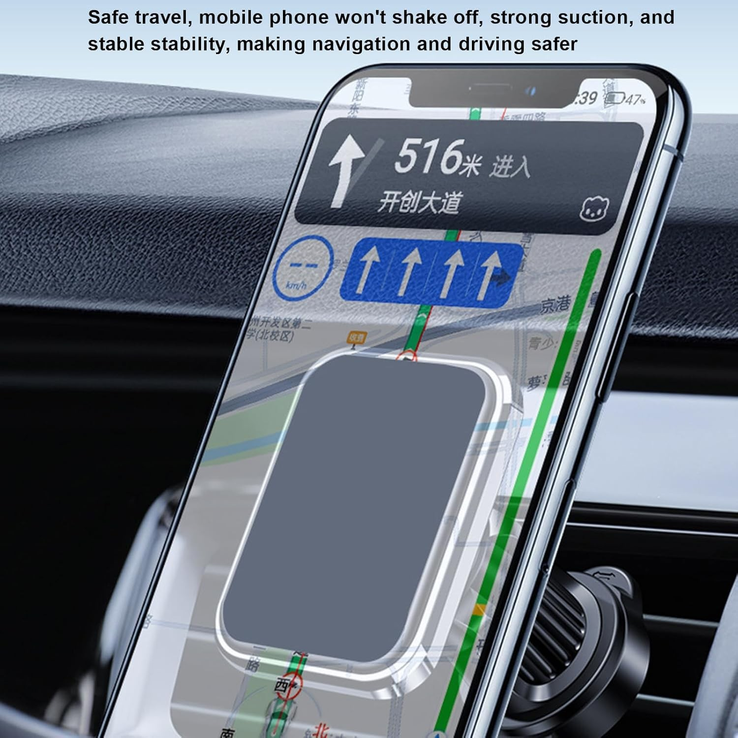 Prindere Magnetica Robustă: Înarmat cu tehnologii avansate de magnetizare, suportul asigură o fixare solidă a telefonului tău, indiferent de suspensia mașinii sau de condițiile rutiere. Acesta este compatibil cu telefoanele dotate cu tehnologia MagSafe, dar poate susține și dispozitive standard prin intermediul unei plăcuțe metalice incluse.