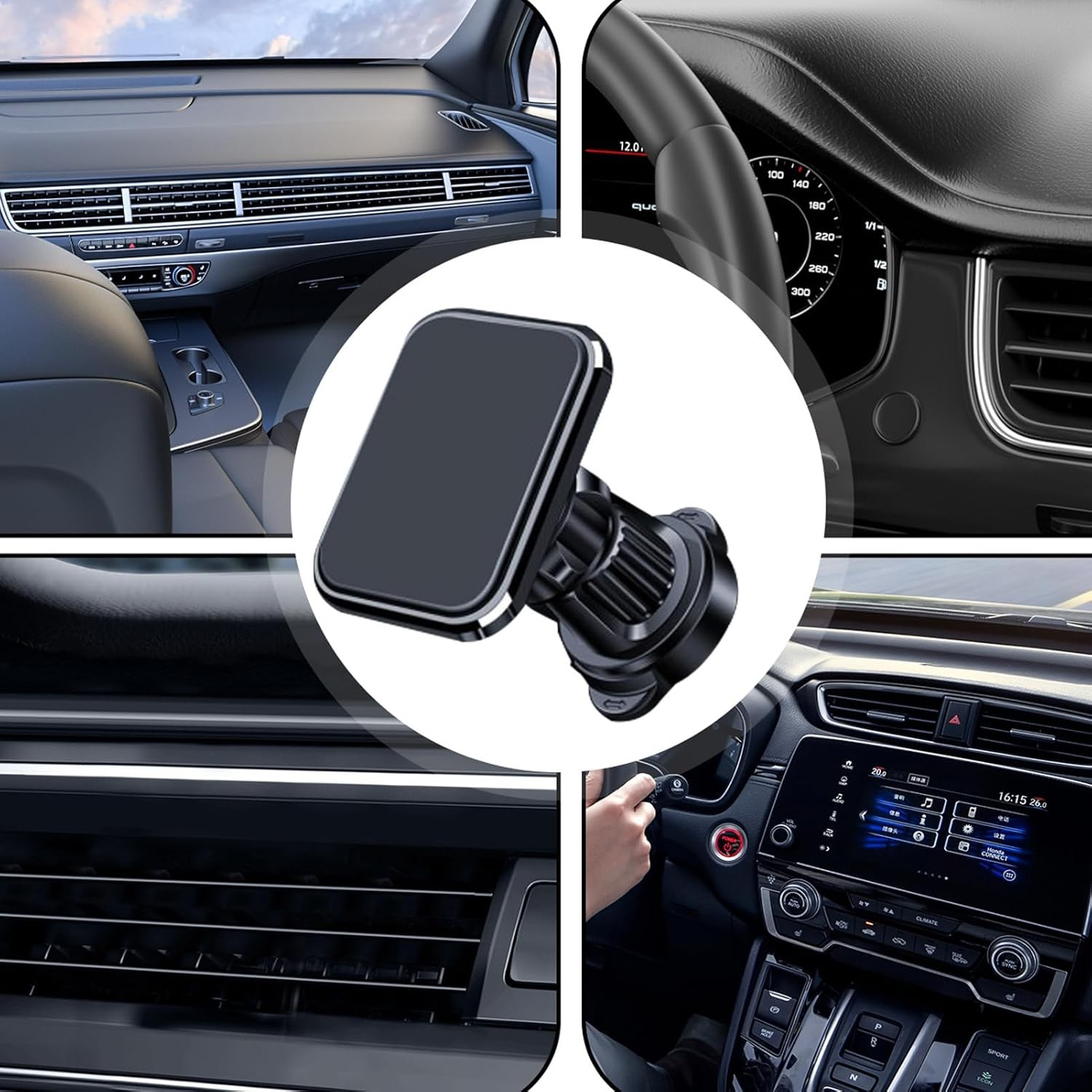 Prindere Magnetica Robustă: Înarmat cu tehnologii avansate de magnetizare, suportul asigură o fixare solidă a telefonului tău, indiferent de suspensia mașinii sau de condițiile rutiere. Acesta este compatibil cu telefoanele dotate cu tehnologia MagSafe, dar poate susține și dispozitive standard prin intermediul unei plăcuțe metalice incluse.