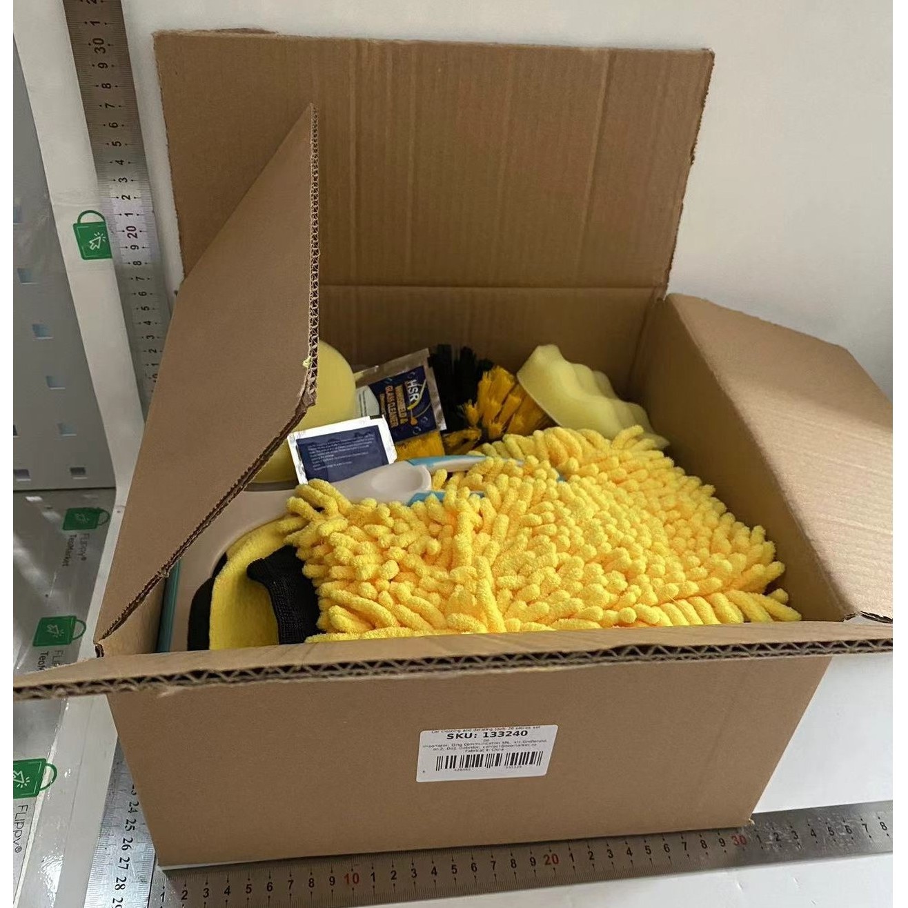 Continut Pachet: Set 26 Accesorii pentru Curatare Auto, Flippy, din PP si Microfibra, Interior/Exterior, 30.5 x 27.5 x 16 cm, Galben/Negru