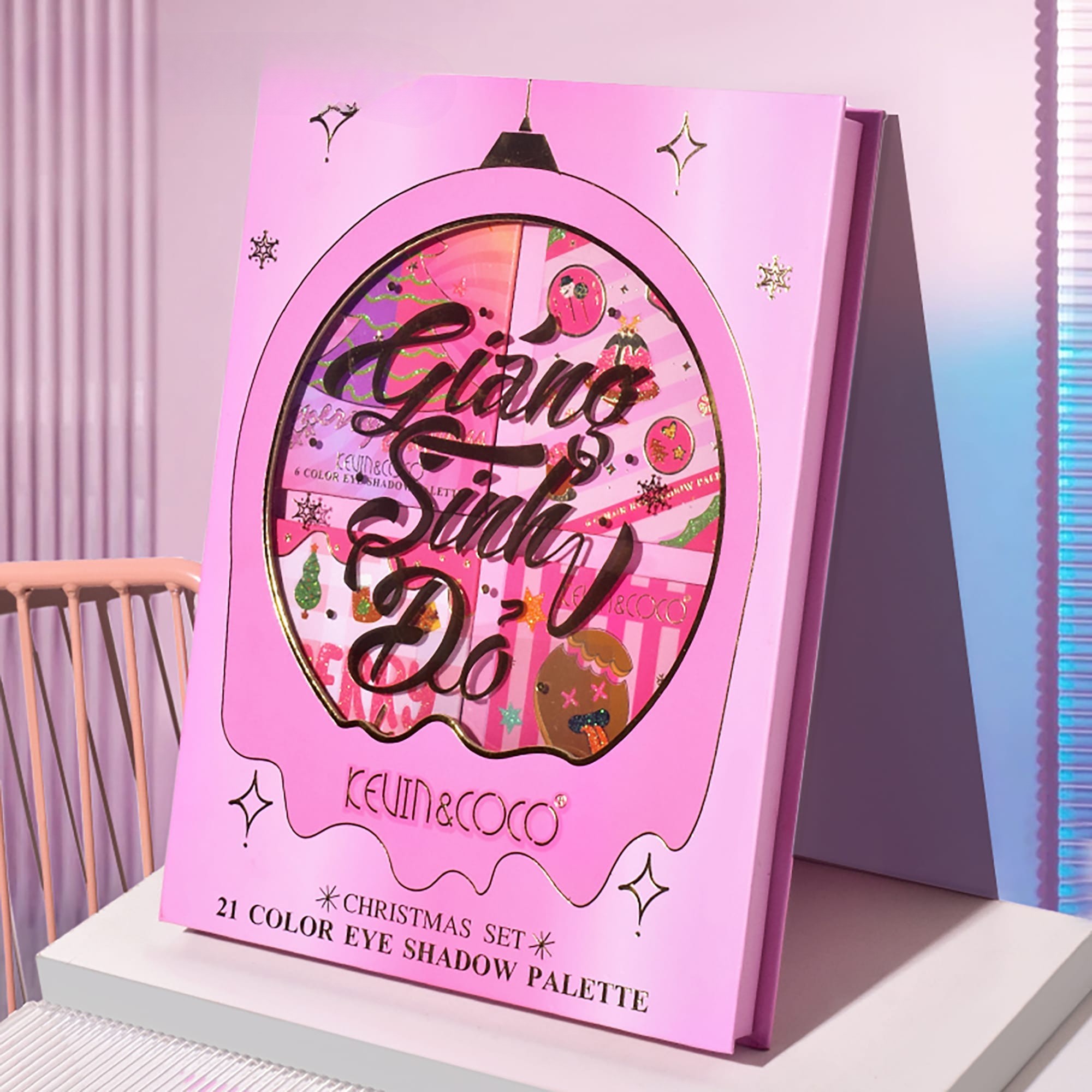 Set 4 Palete de Machiaj, KEVIN & COCO, Christmas Jingle, 21 culori, 27.3 x 20.8 x 2.4 cm