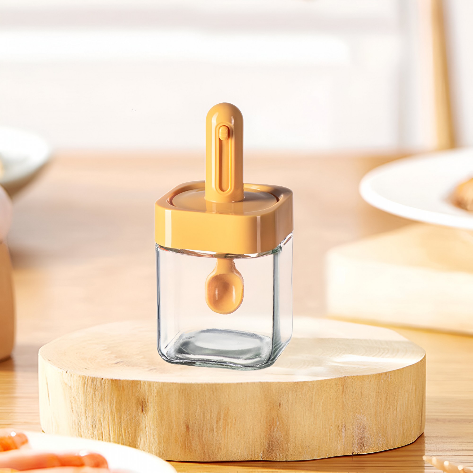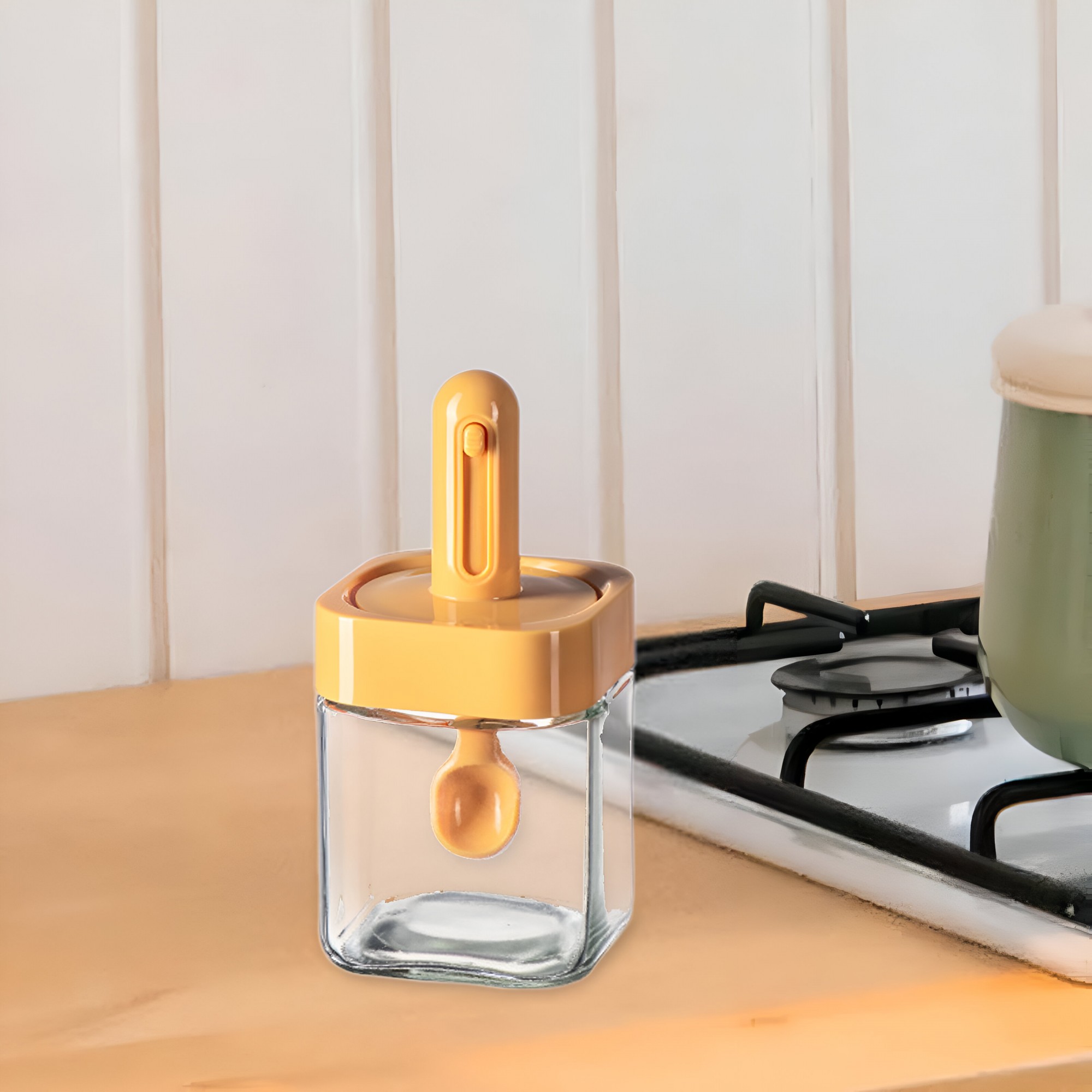 -Material durabil: cutie de condimente transparentă din sticlă, durabilă și reutilizabilă. Deschiderea largă facilitează utilizarea linguriței.