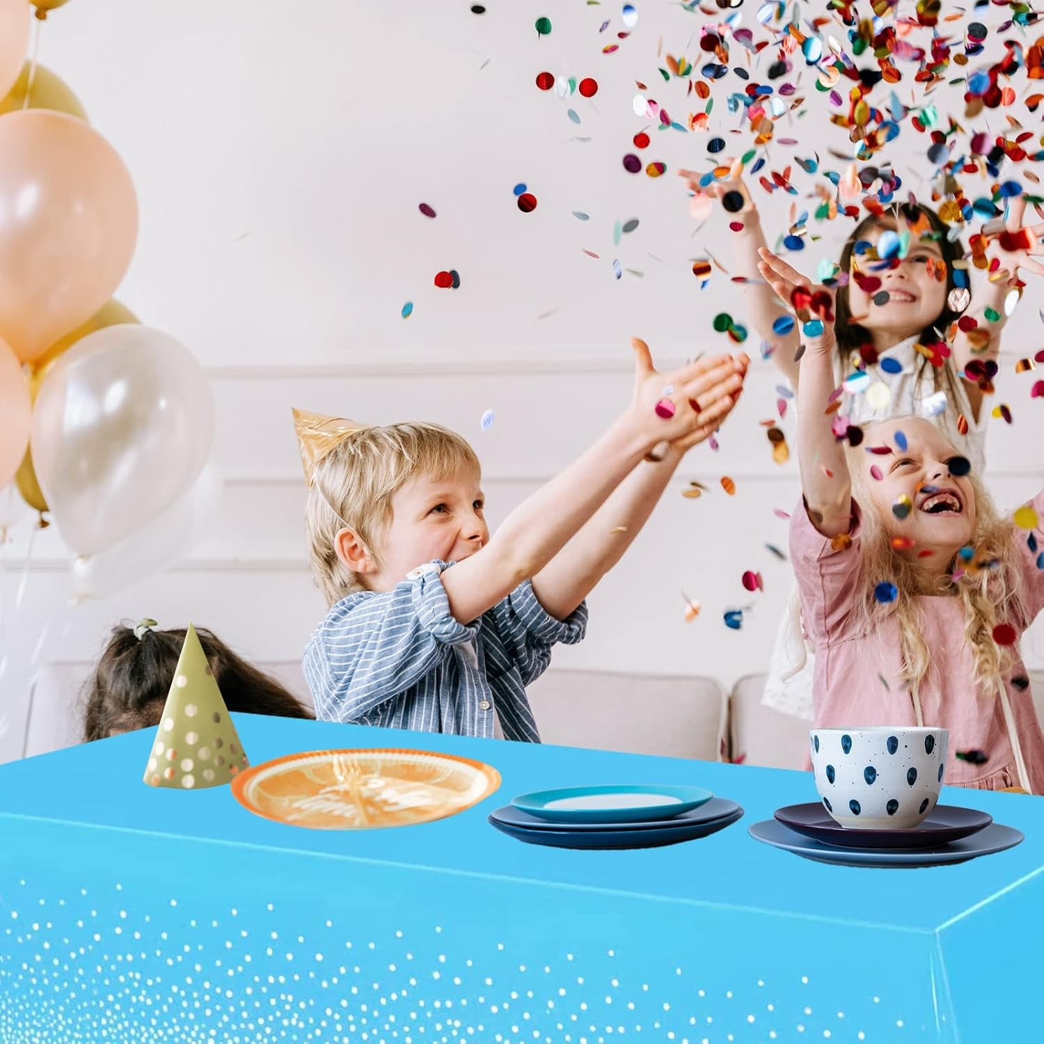 Transformă masa ta într-un decor elegant și festiv cu această față de masă din PEVA, decorată cu un imprimeu modern cu buline. Impermeabilă și anti-pete, este ideală pentru evenimente speciale precum nunți, botezuri, petreceri aniversare sau cine elegante.