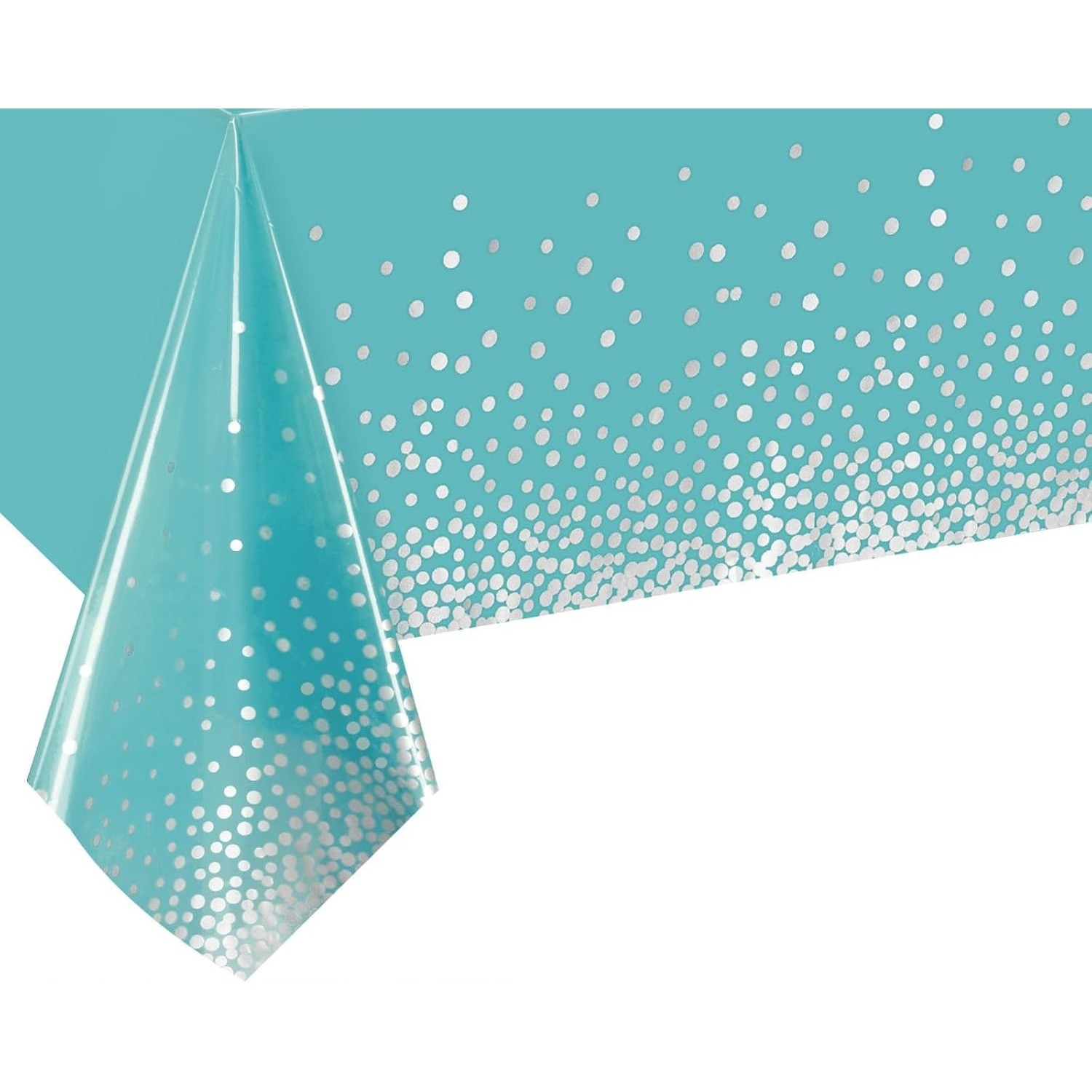 Fata de Masa, din PEVA, Imprimeu Buline Argintii, 137 x 274 cm, Impermeabila, Fara Pete, Curatare Rapida, Albastru