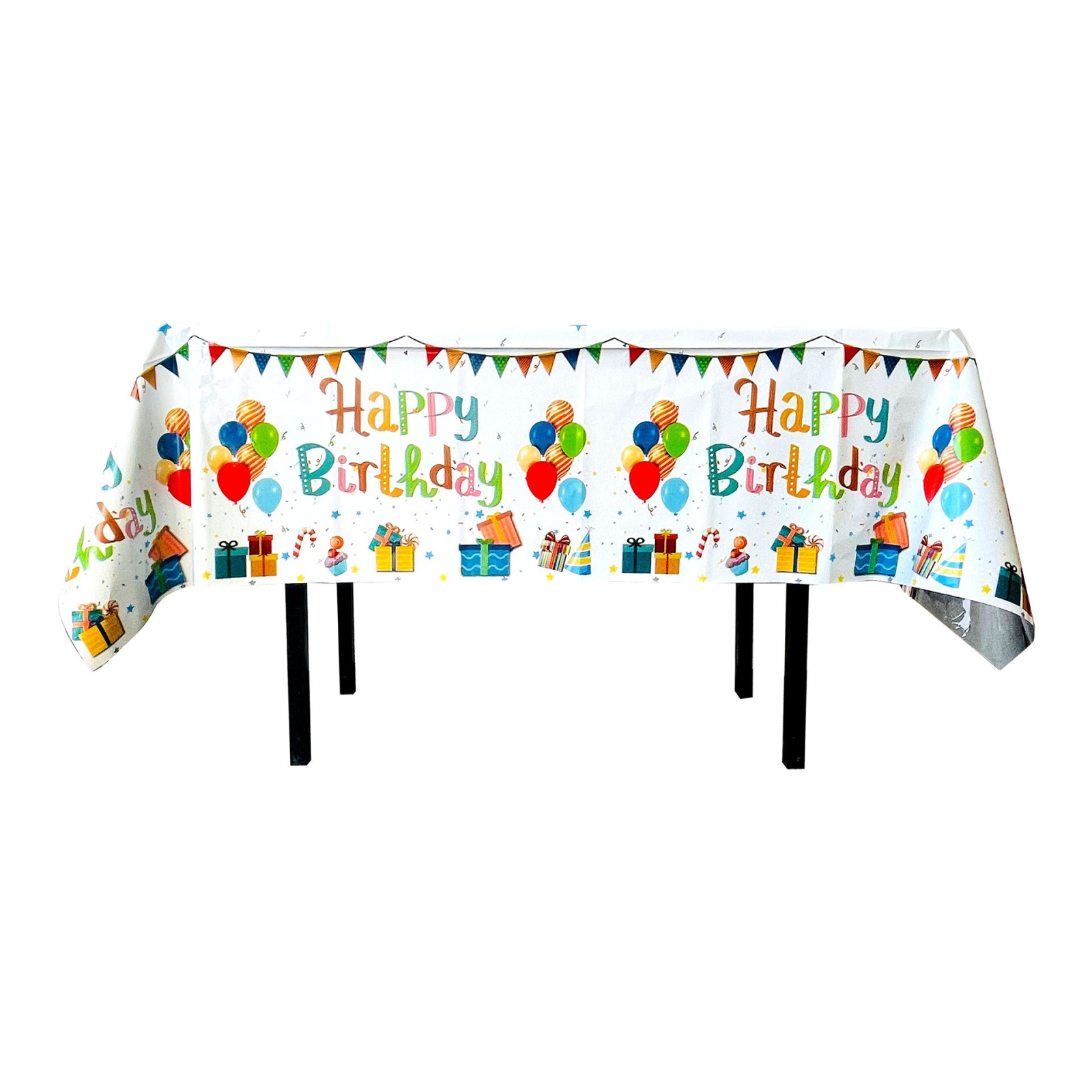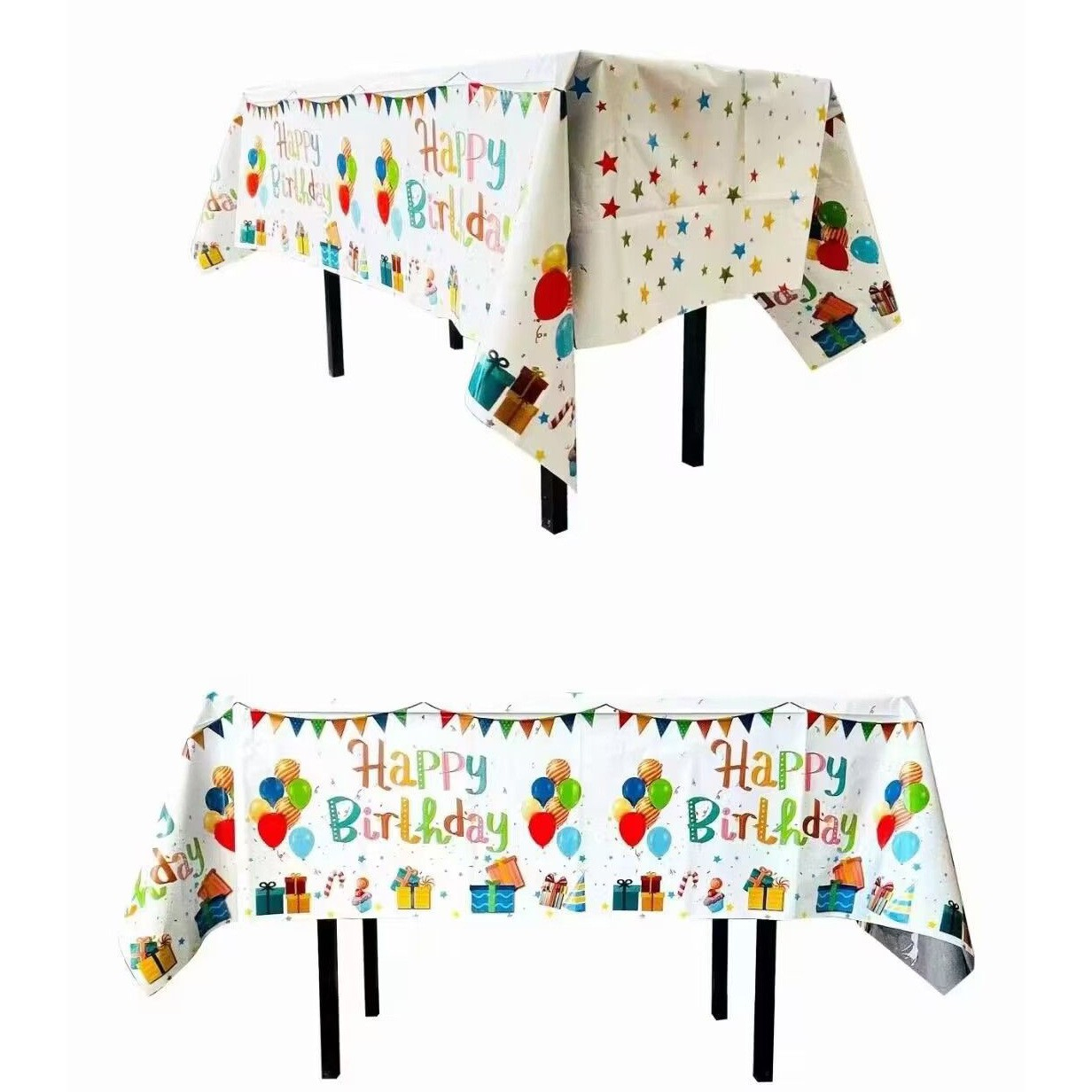Creează un decor festiv pentru aniversări și petreceri cu această față de masă din folie, special concepută pentru a adăuga un plus de veselie și protecție mesei tale.