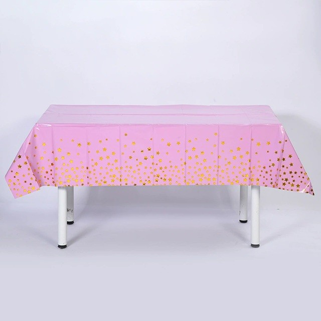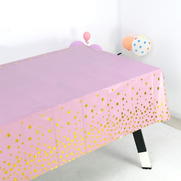 Fata de Masa, din Folie, Imprimeu Stele Aurii, Impermeabila, 137 x 274 cm, Roz