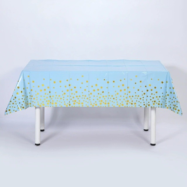 Fata de Masa, din Folie, Imprimeu Stele Aurii, Impermeabila, 137 x 274 cm, Albastru
