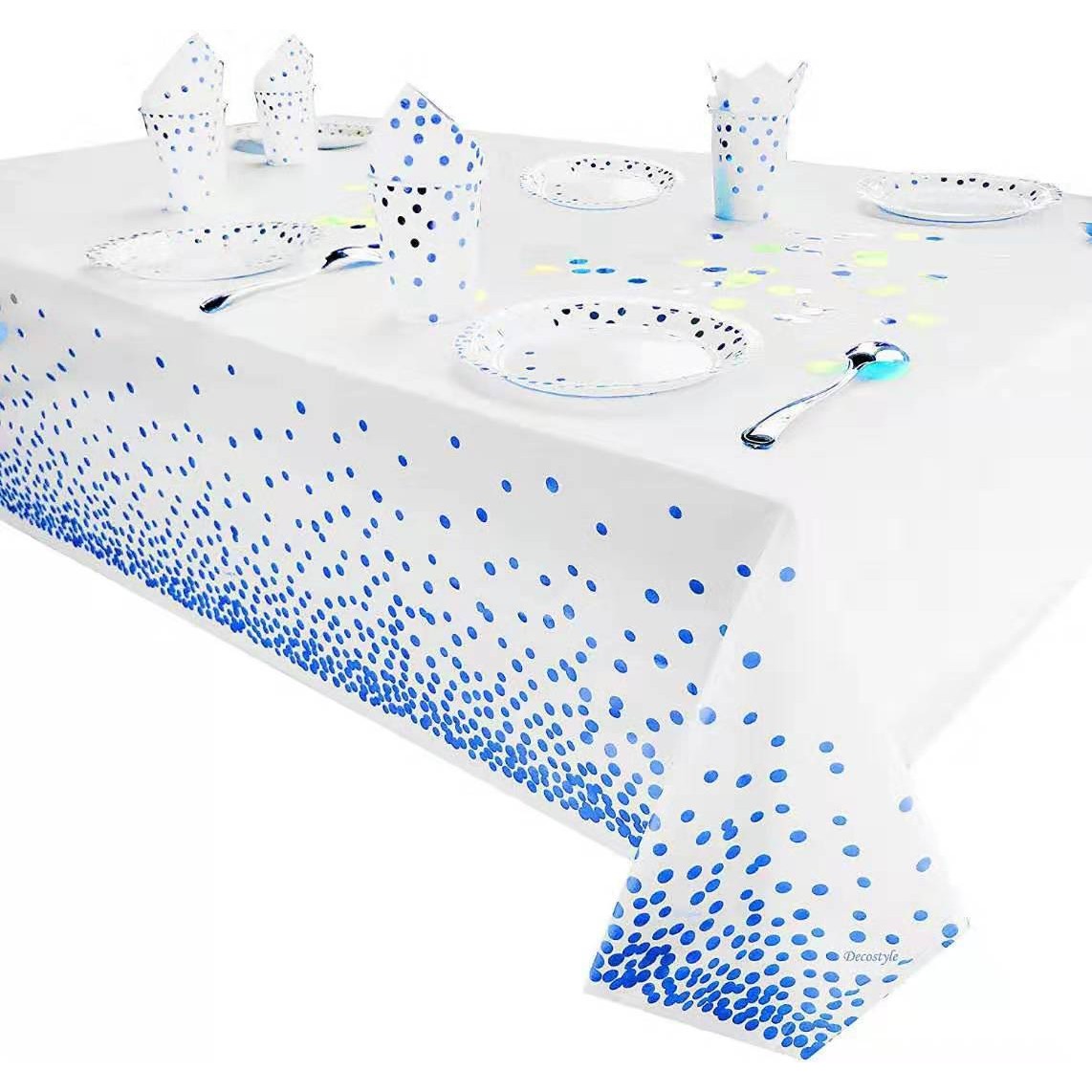 Fata de Masa, din PEVA, Imprimeu Buline, 137 x 274 cm, Impermeabila, Fara Pete, Curatare Rapida, Albastru