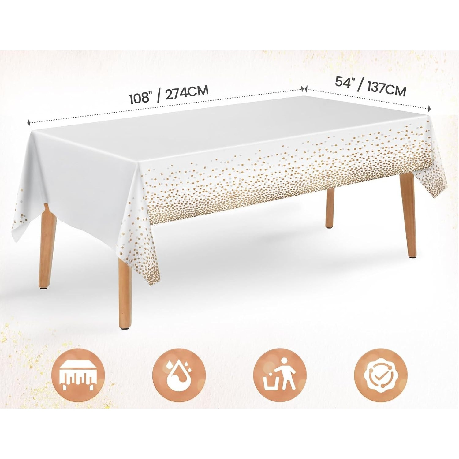 Transformă masa ta într-un decor elegant și festiv cu această față de masă din PEVA, decorată cu un imprimeu modern cu buline. Impermeabilă și anti-pete, este ideală pentru evenimente speciale precum nunți, botezuri, petreceri aniversare sau cine elegante.