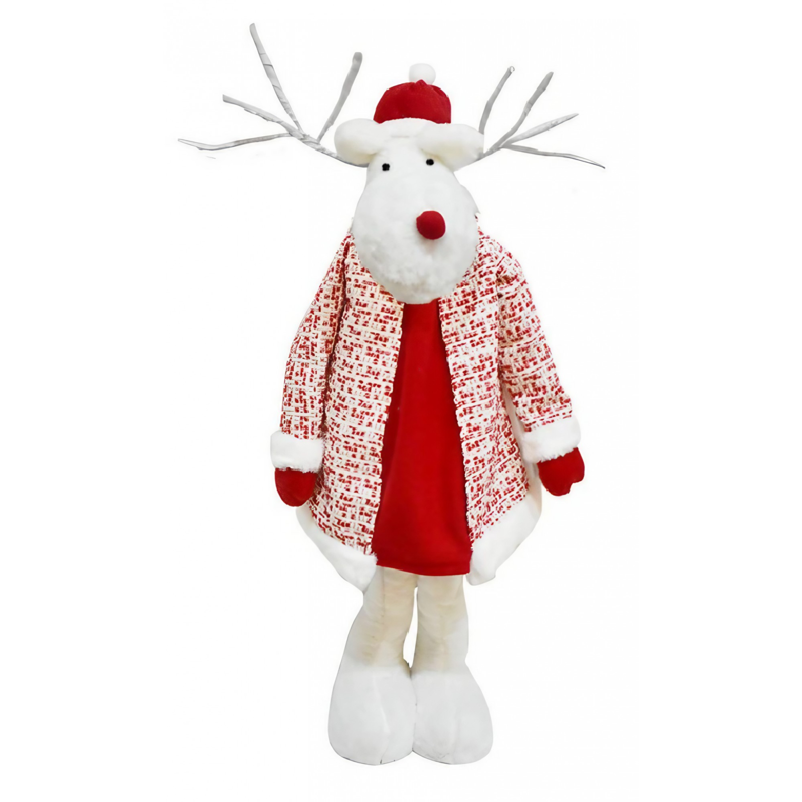 Design Fermecător: Ren poartă o haină alb-roșie, care adaugă un detaliu festiv și plin de farmec, perfect pentru a captiva privirile și a aduce un plus de eleganță oricărui decor.