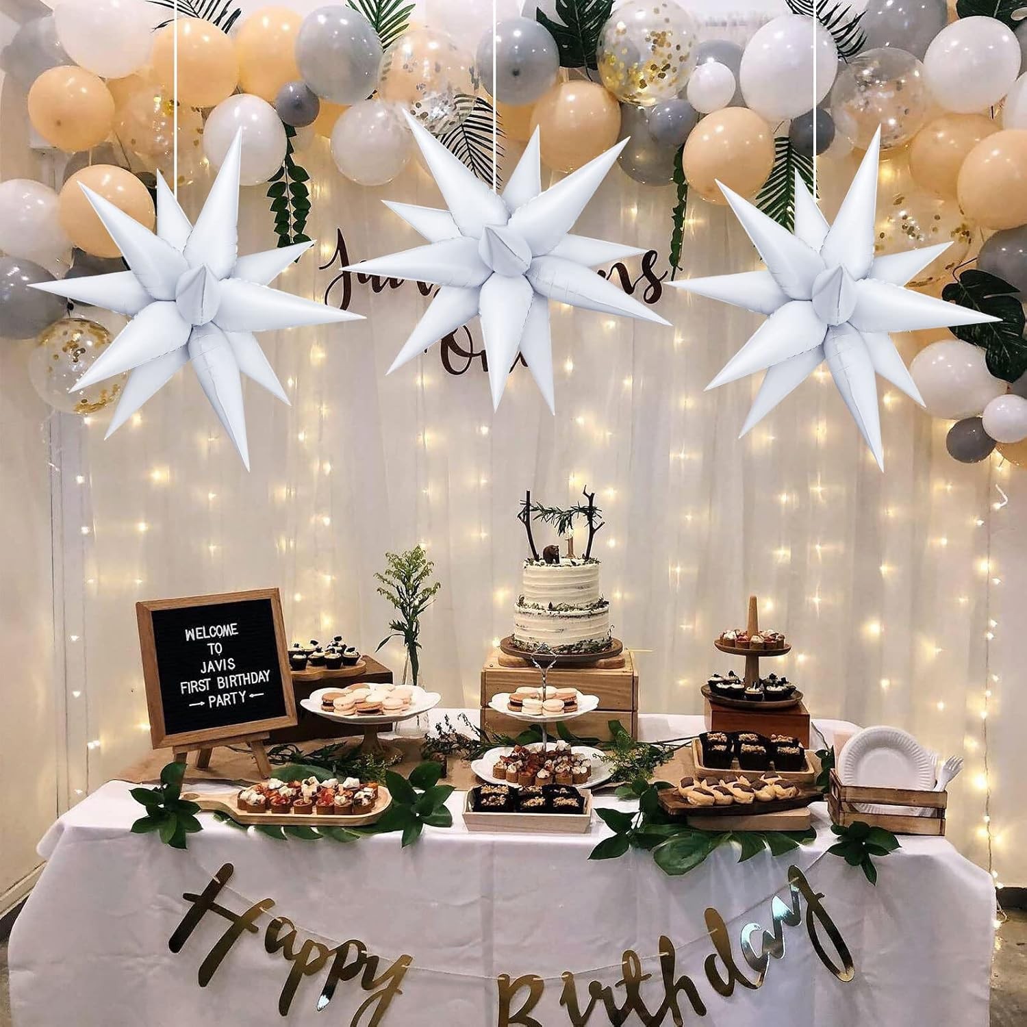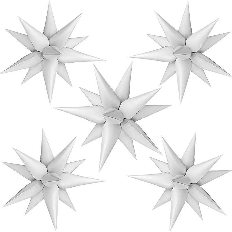 Balon din Folie Metalizata, Figurina Stea 3D, 66 cm, Ambalaj Individual, Pai inclus, Umflare cu Aer sau Heliu, Alb