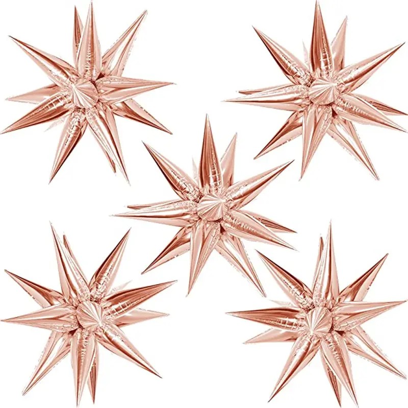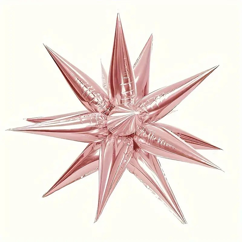 Balon din Folie Metalizata, Figurina Stea 3D, 66 cm, Ambalaj Individual, Pai inclus, Umflare cu Aer sau Heliu, Roz