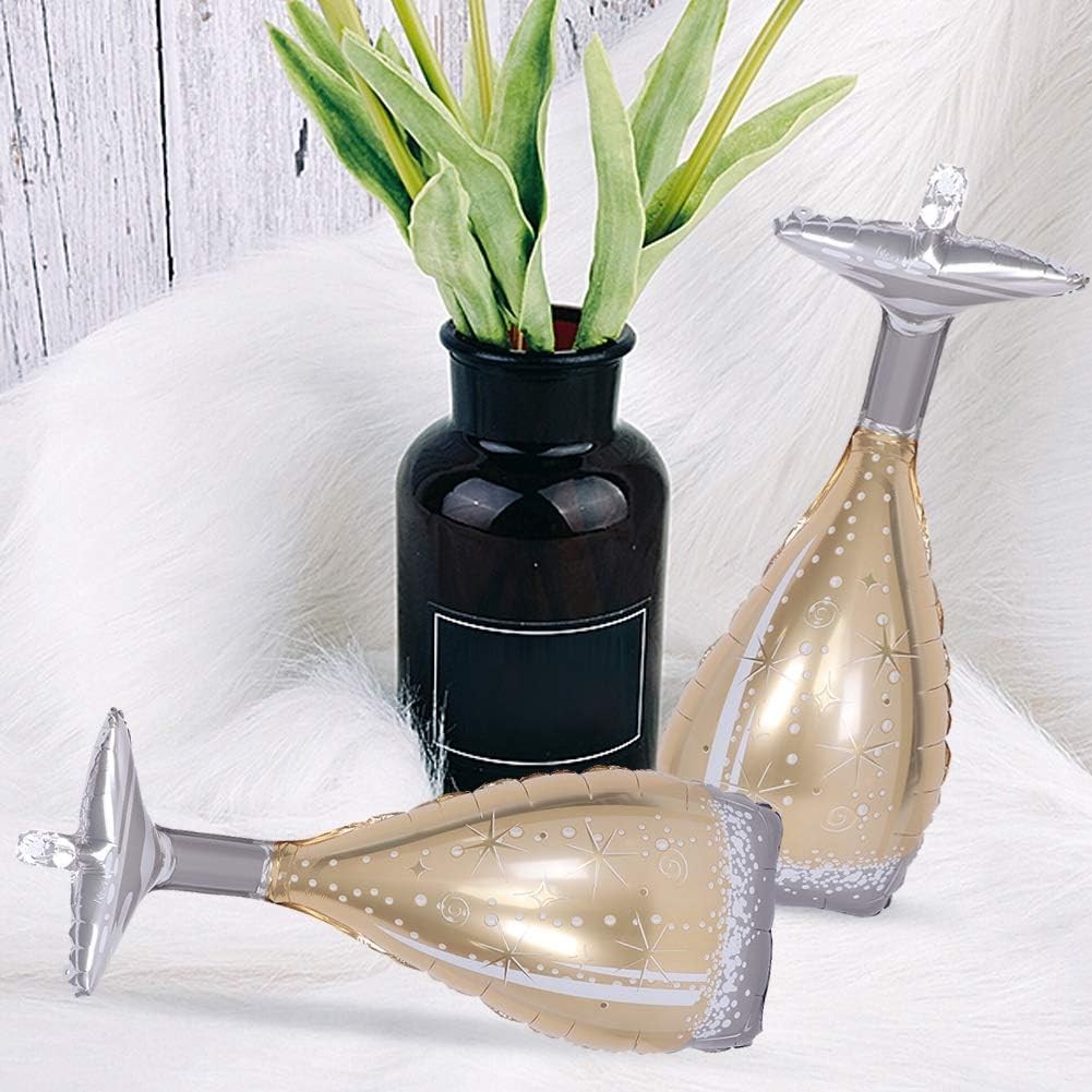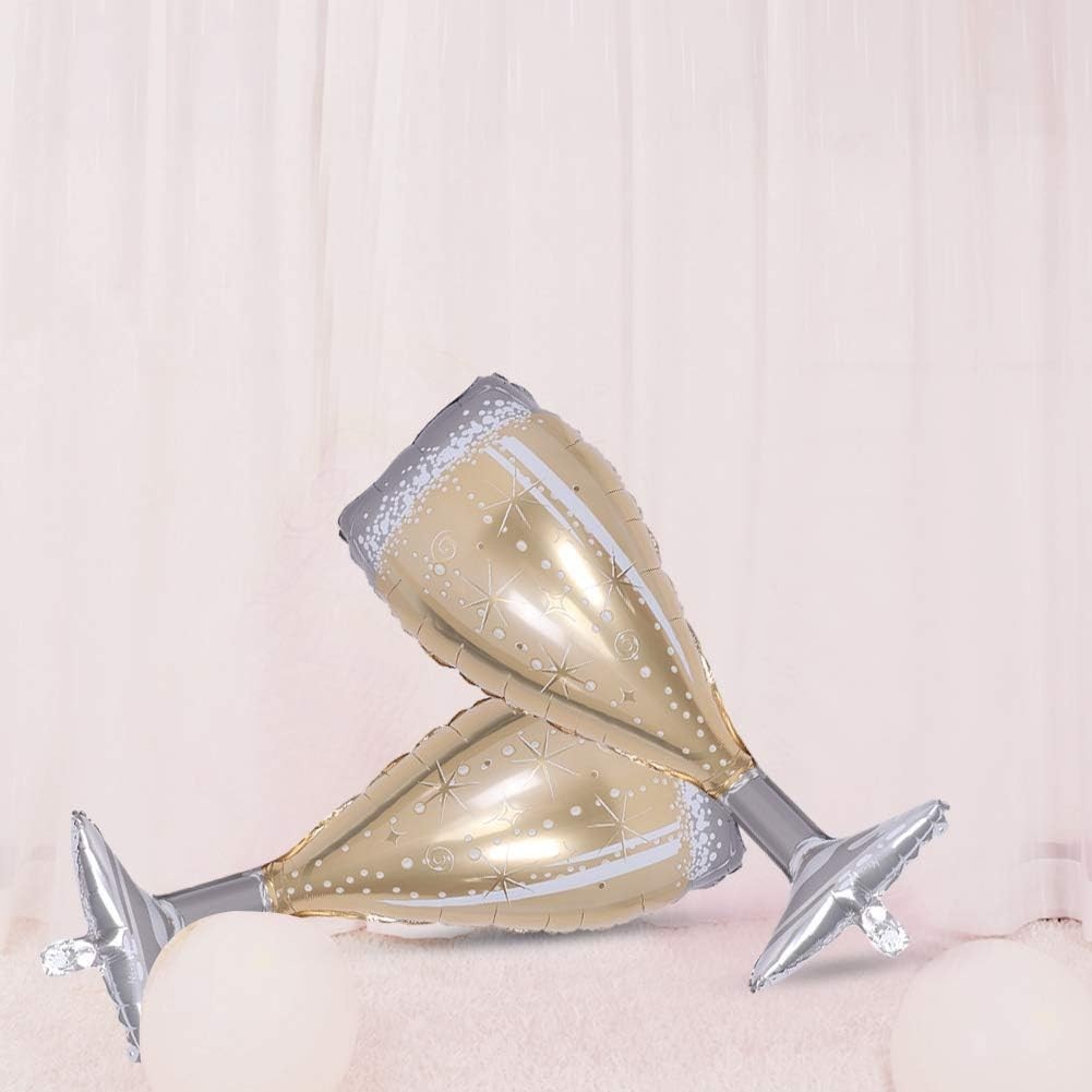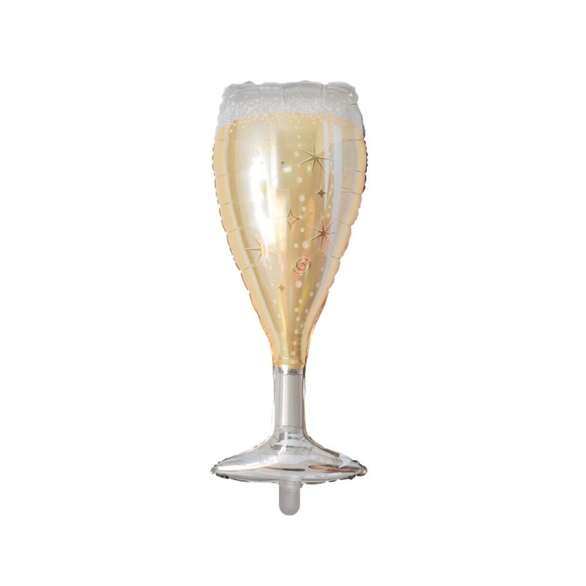 Balon din Folie Metalizata, Figurina Pahar de Sampanie, Tema Aniversare, 100x40 cm, Ambalaj Individual, Pai Inclus, Umflare cu Aer sau Heliu, Auriu