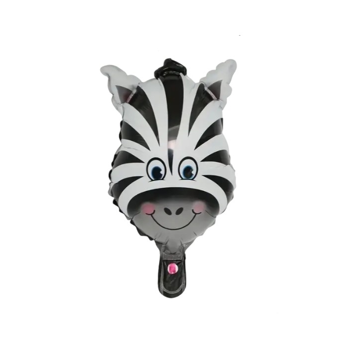 Balon din Folie Metalizata, Mini Figurine Animalute, Model Zebra, Tematica Aniversare,25x45 cm, Ambalaj Individual, Pai Inclus, Umflare cu Aer sau Heliu, Multicolor