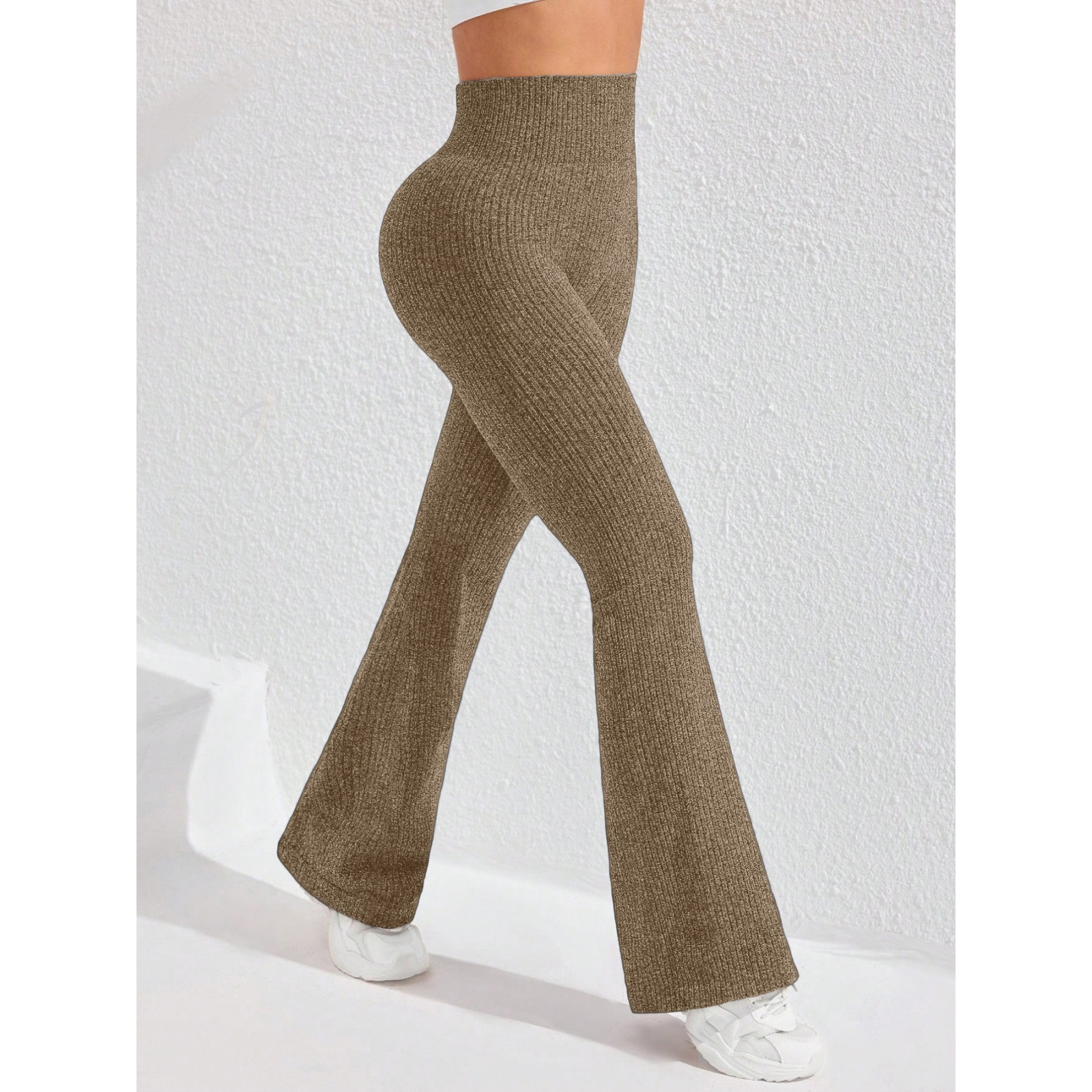 Pantaloni Sport de Damă, pentru Yoga, Talie Înaltă, Evazați, Tricotați, Khaki, Marime L