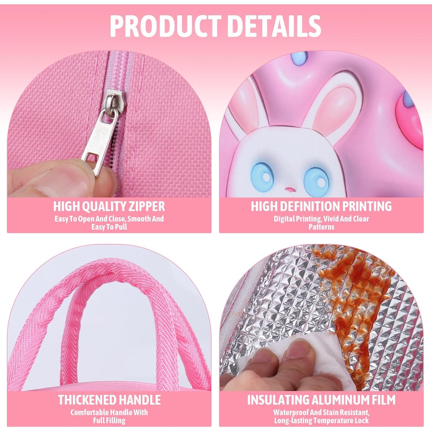 Geant? Frigorific?, cu Desene Animate 3D, Portabil? pentru Copii, de Prânz, din Pânz? Oxford, 23x13x19 cm, Model Iepuras, Roz