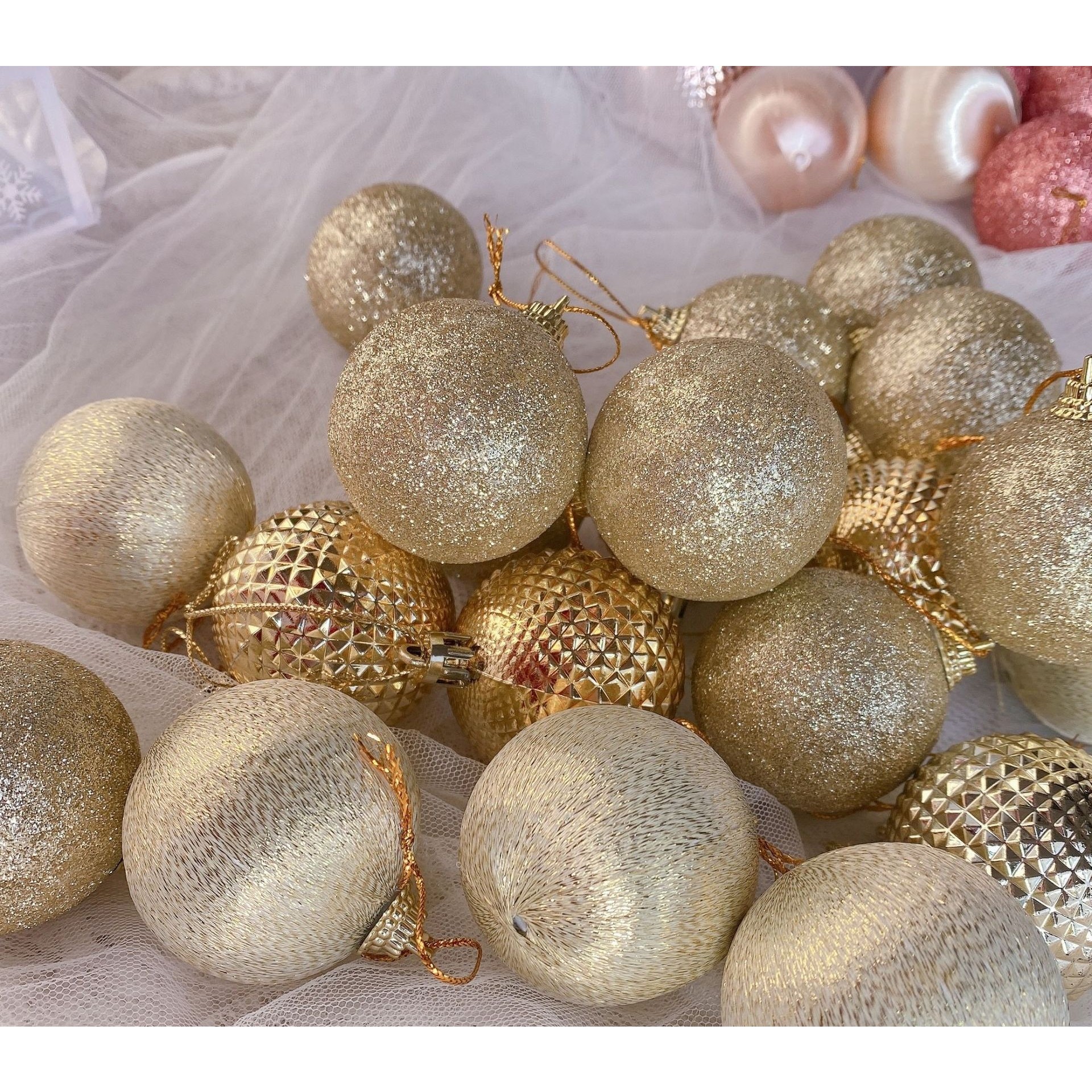 Împodobește bradul cu eleganță și strălucire folosind setul de 12 globuri de Crăciun. Realizate din plastic rezistent, globurile combină finisajul lucios, mat și decorul cu glitter, creând un efect vizual spectaculos. Perfecte pentru decorul festiv al bradului, acestea vin cu ață de agățat inclusă și ambalate într-o cutie cu motiv de Crăciun, gata pentru depozitare sau oferire cadou.