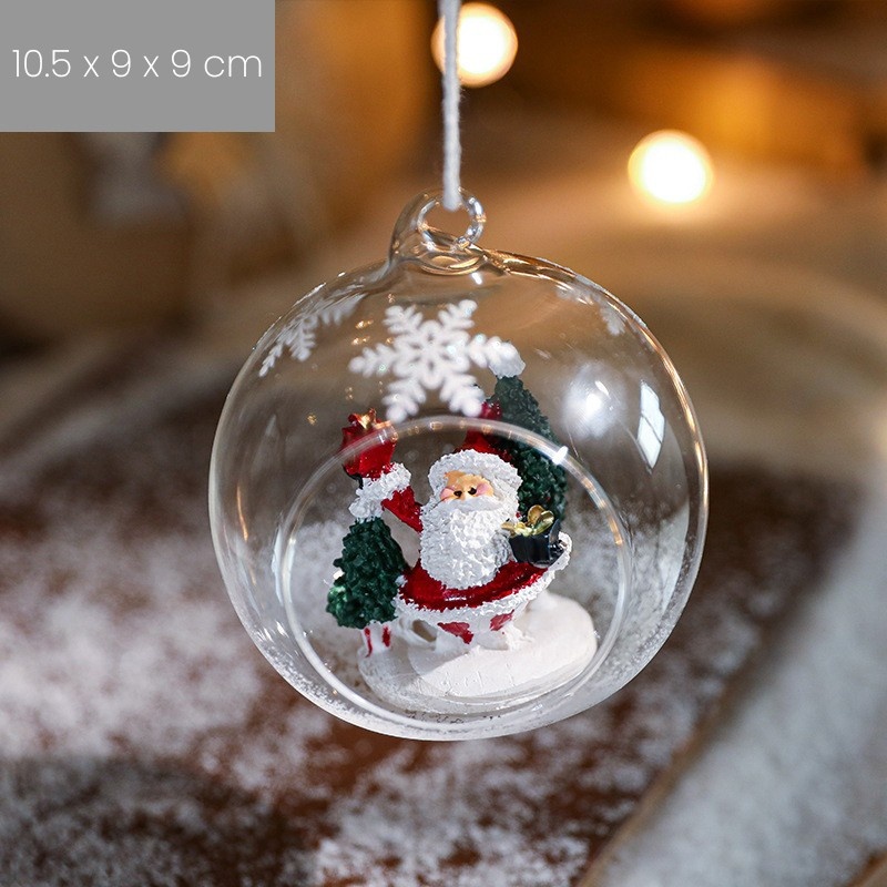 Glob pentru Bradul de Craciun, Model Mos Craciun, Tip Pandativ, Glob Transparent Semi-Deschis, 10.5 x 9 x 9 cm, Transparent