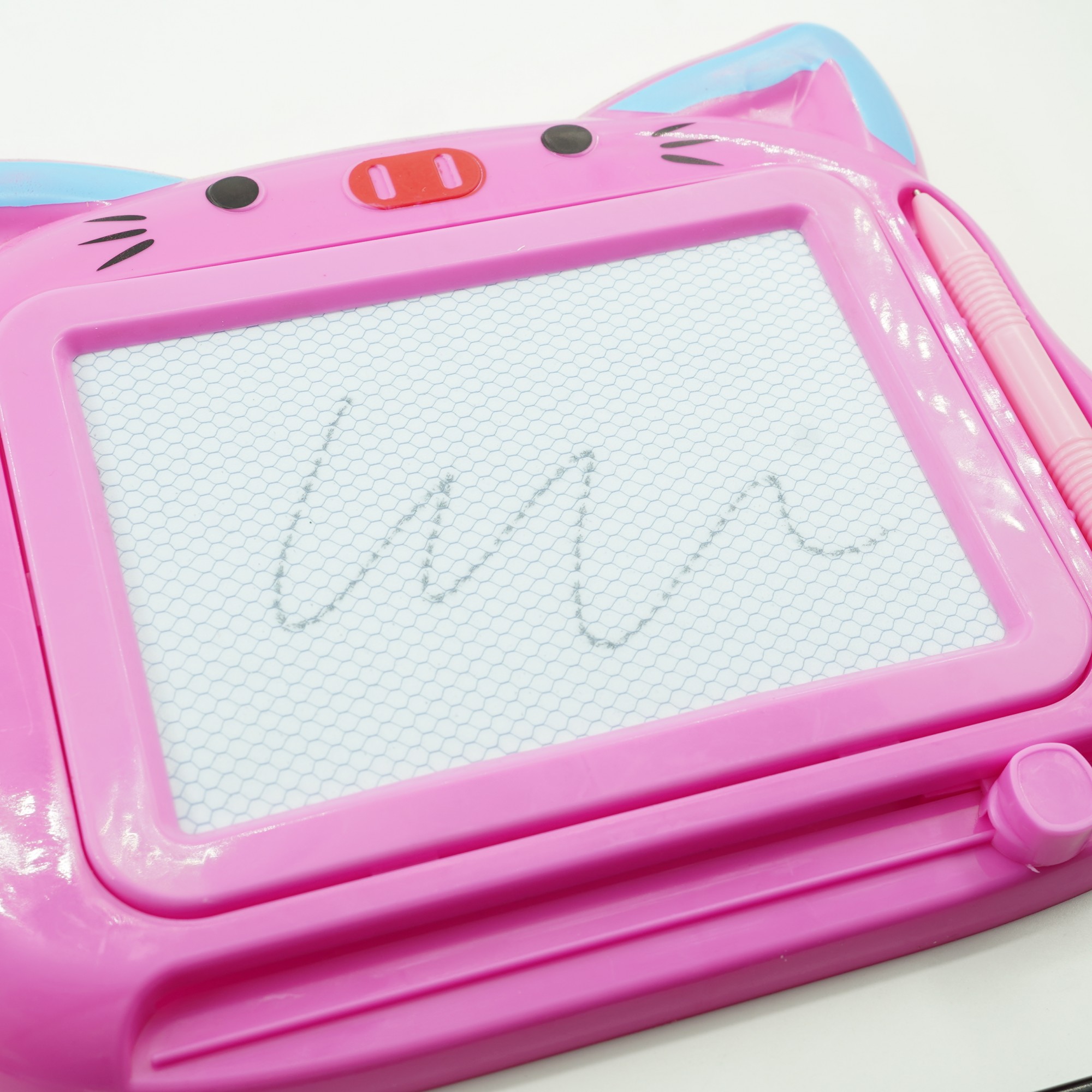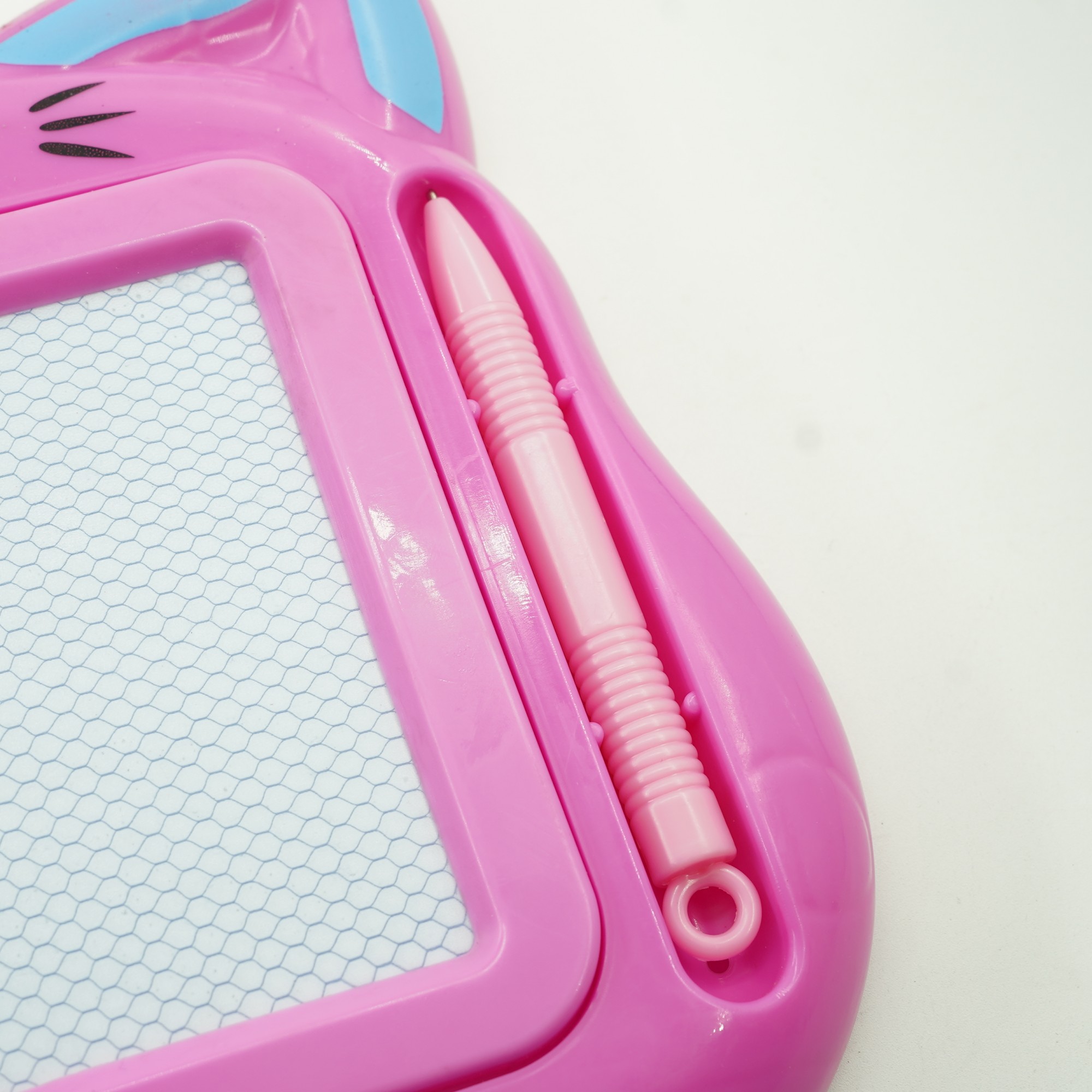 Tablita Magnetica de Scris si Desenat, Model Pisica, cu Creion, Dimensiuni 23.2x18.5 cm, Suprafata Desen 14.6x10.4 cm, Dezvolta Imaginatia si Creativitatea, Incurajeaza Exersarea Scrisului, Fucshia