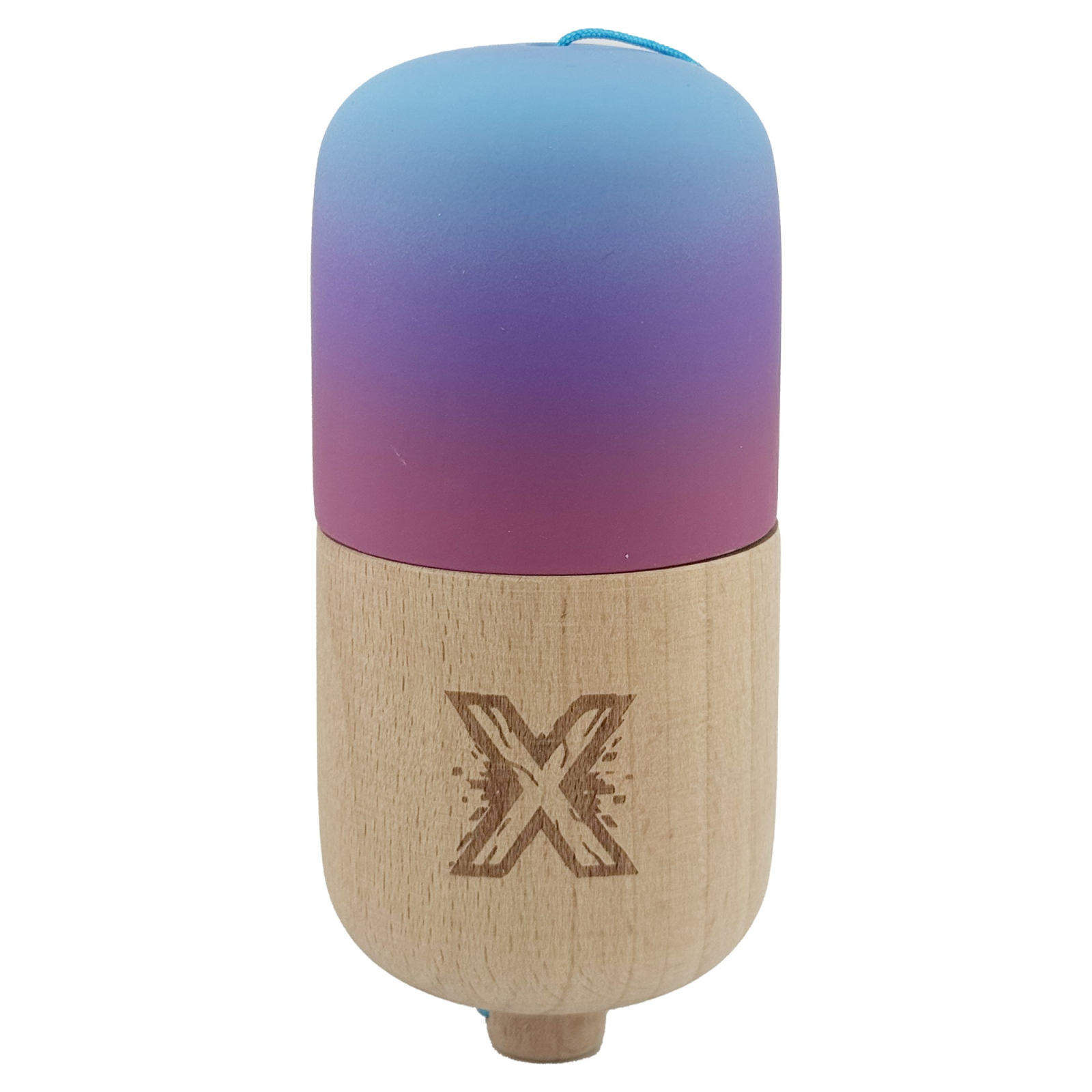 Kendama Pill X Originala, Profesionala Model Rubber Grip Pilula, din Lemn, Varsta 9+, Ata 62/65 cm, 11 x 5 x 5 cm, Gradient Albastru deschis/Rosu