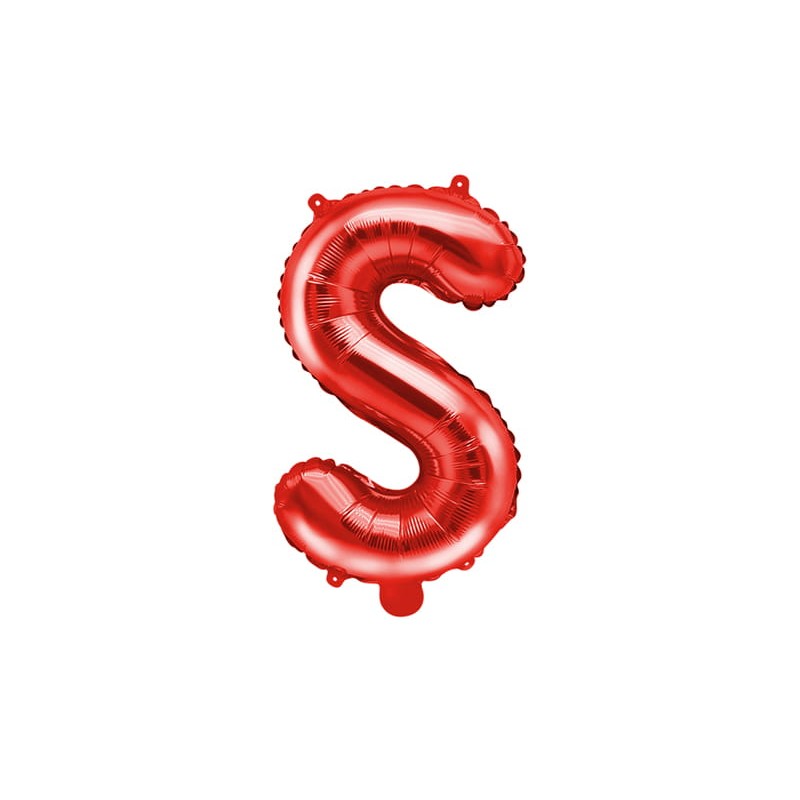 Balon Folie Metalizata Litera S, 40 cm, Umflati cu Heliu sau Aer, Ambalaj Individual, Pai inclus, Rosu