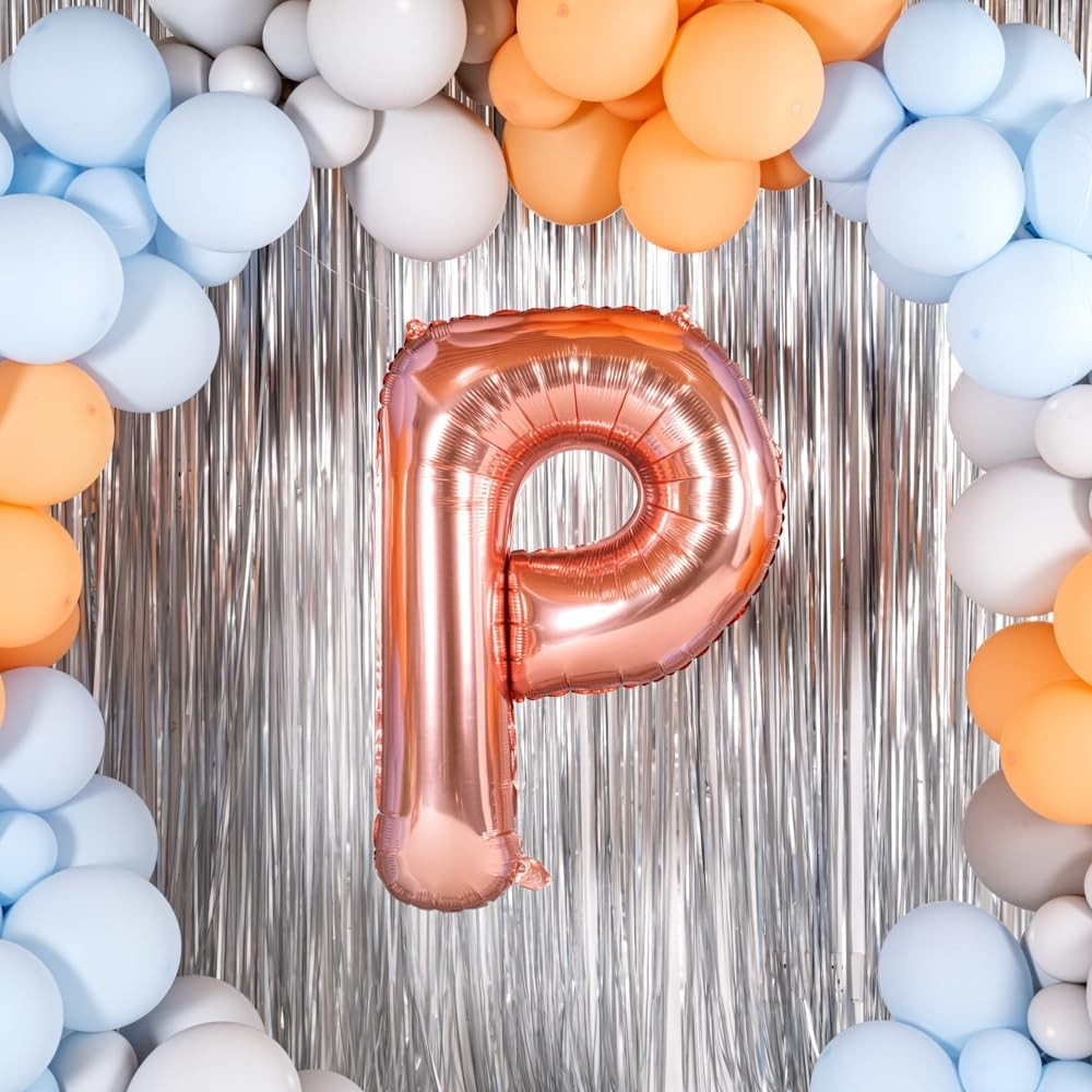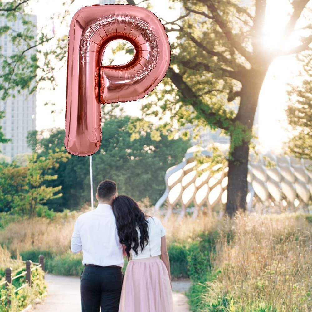 Balon Folie Metalizata Litera P, 100 cm, Umflati cu Heliu sau Aer, Ambalaj Individual, Pai inclus, Rose Gold