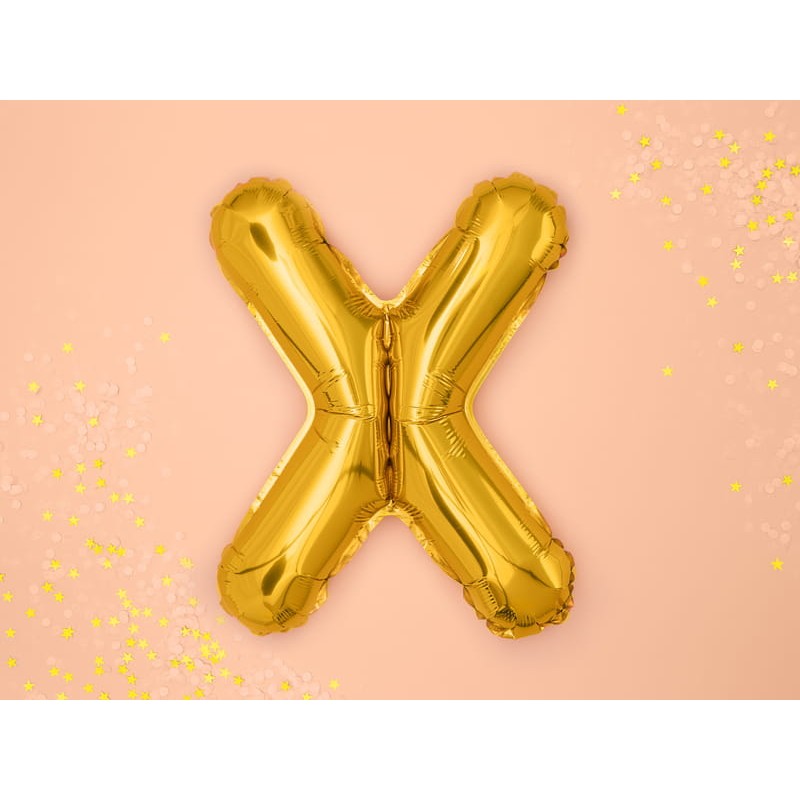 Balon Folie Metalizata Litera X, 80 cm, Umflati cu Heliu sau Aer, Ambalaj Individual, Pai inclus, Auriu