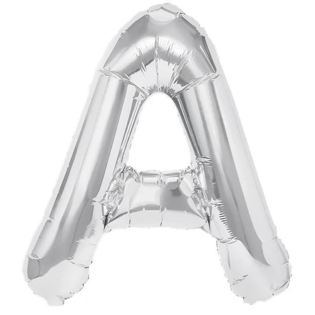 Balon Folie Metalizata Litera A, 80 cm, Umflati cu Heliu sau Aer, Ambalaj Individual, Pai inclus, Argintiu