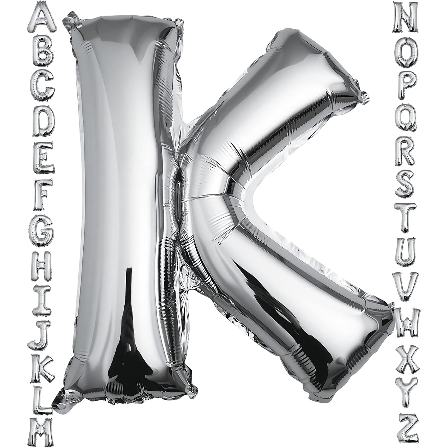 Balon Folie Metalizata Litera K, 80 cm, Umflati cu Heliu sau Aer, Ambalaj Individual, Pai inclus, Argintiu