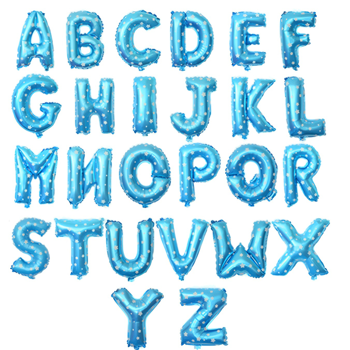 Balon Folie Metalizata Litera I, 40 cm, Cu Imprimeu Stelute, Umflati cu Heliu sau Aer, Ambalaj Individual, Pai inclus, Albastru