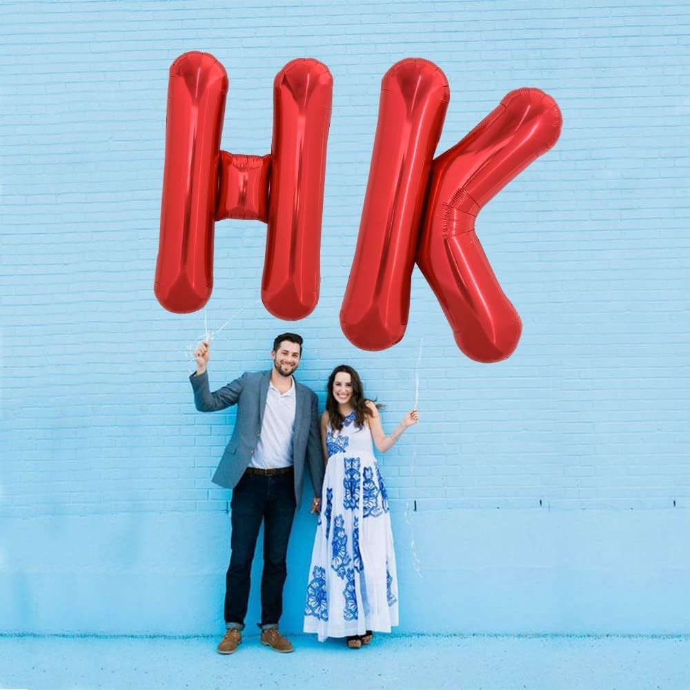 Balon Folie Metalizata Litera K, 40 cm, Umflati cu Heliu sau Aer, Ambalaj Individual, Pai inclus, Rosu