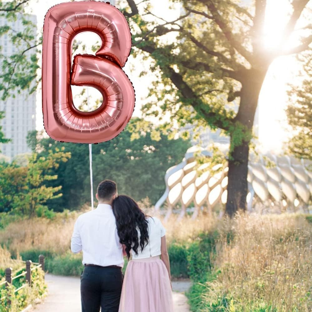 Balon Folie Metalizata Litera B, 100 cm, Umflati cu Heliu sau Aer, Ambalaj Individual, Pai inclus, Rose Gold