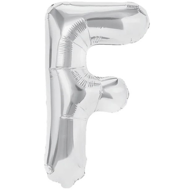 Balon Folie Metalizata Litera F, 40 cm, Umflati cu Heliu sau Aer, Ambalaj Individual, Pai inclus, Argintiu