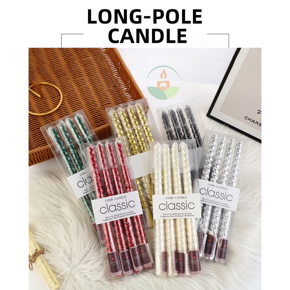Set 4 Lumanari pentru Masa, Cina, Decor, Model Rasucit, Lungime 25 cm, Auriu