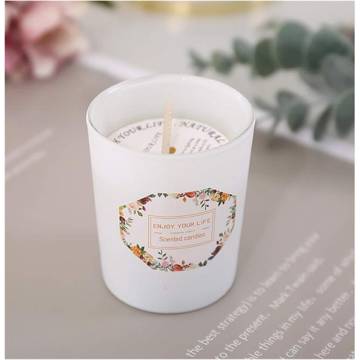 Lumanare Parfumata, Model Pahar Alb Mat, Aroma de Ceai Verde si Floare de Portocal, din Ceara de Soia, 6.2 x 5.2 cm, Alb
