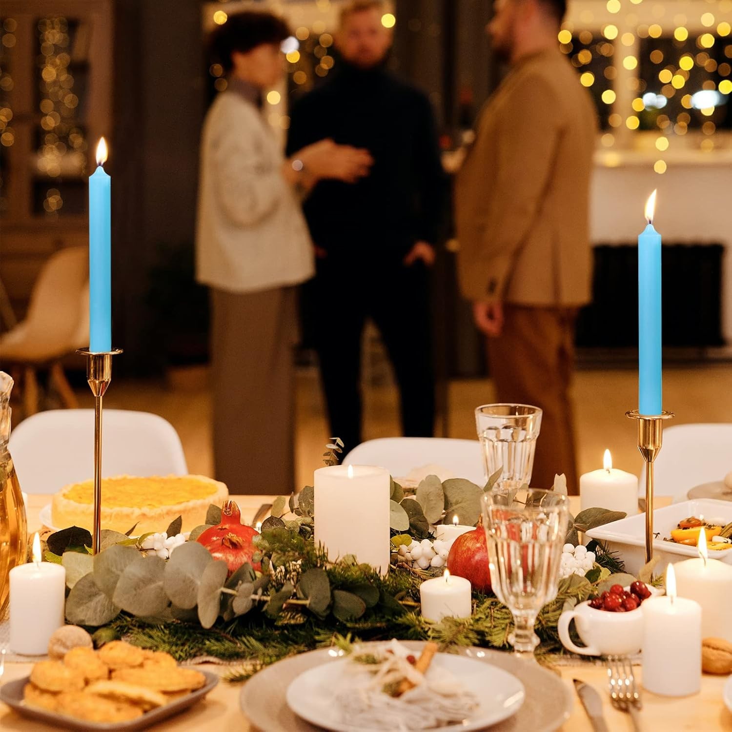 Aceste lumânări elegante sunt ideale pentru cine romantice, decorarea mesei sau evenimente speciale. Cu un design simplu și sofisticat, oferă o lumină caldă și plăcută, fără miros, fum sau picurare.