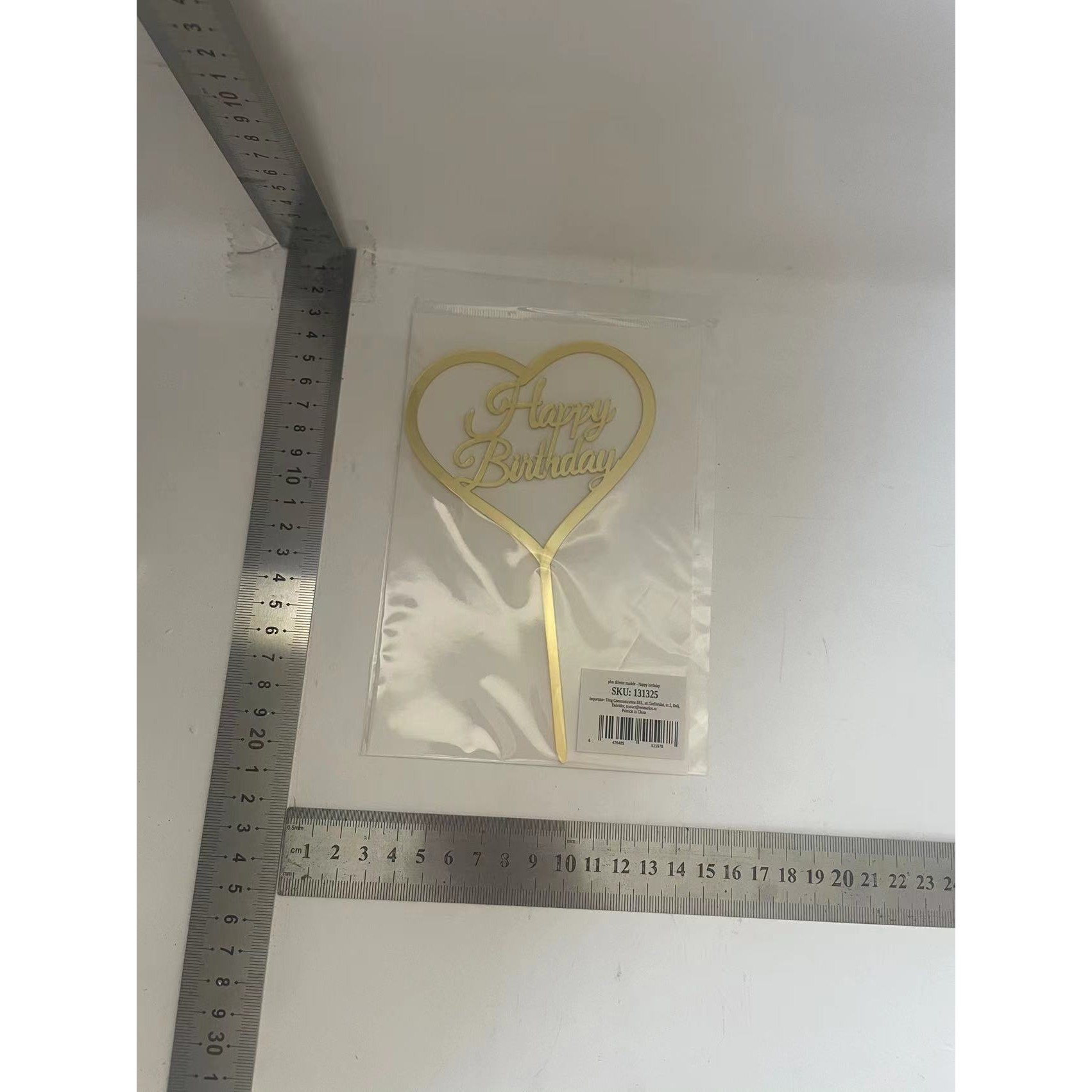 Decoratiune Topper pentru Tort, Model Inimioara Scris Happy Birthday, Tematica Aniversare, Auriu