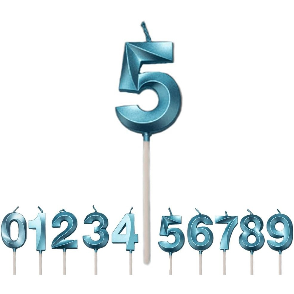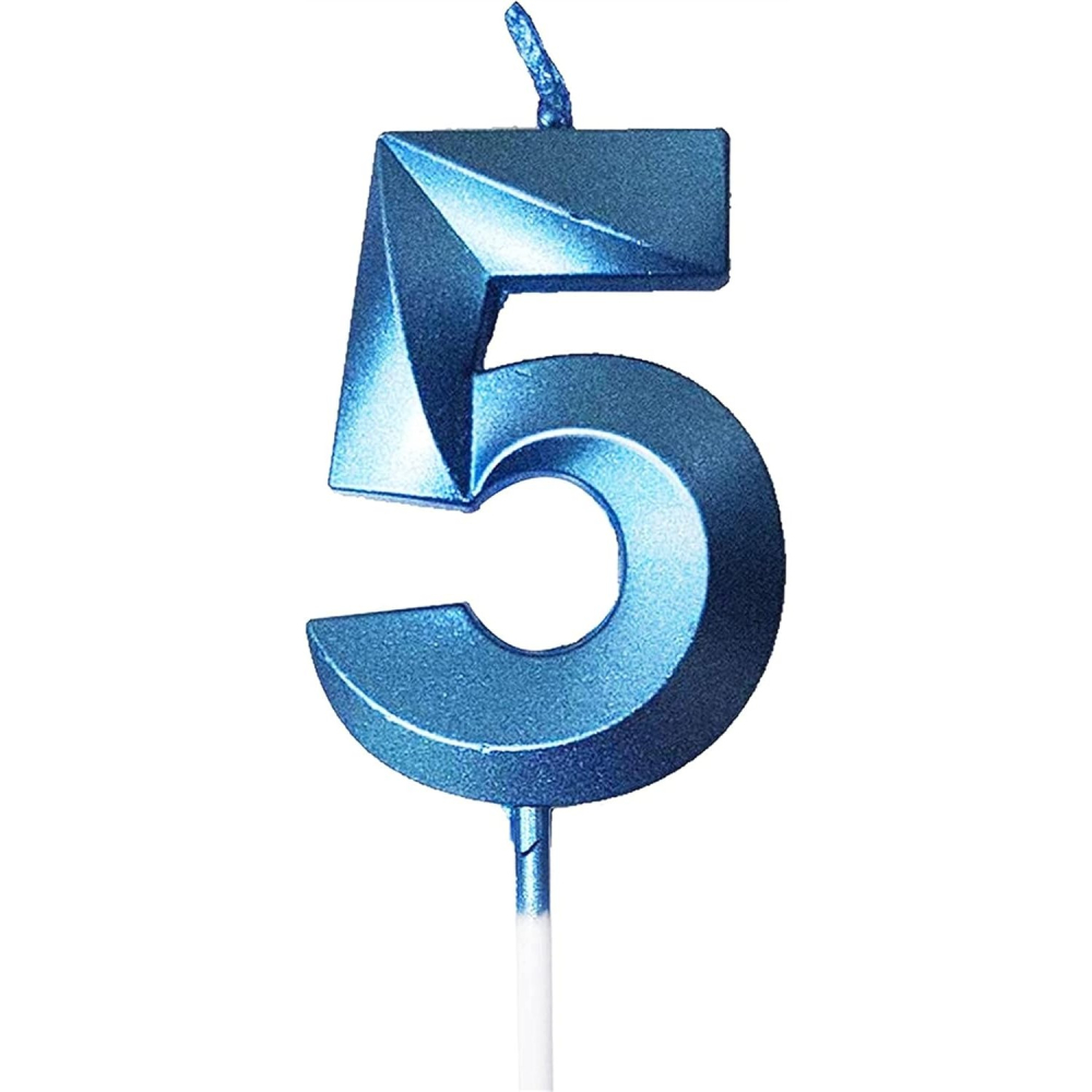 Lumânare Cifră 5,®, Model Diamond, 5 x 3.4 cm, Albastru
