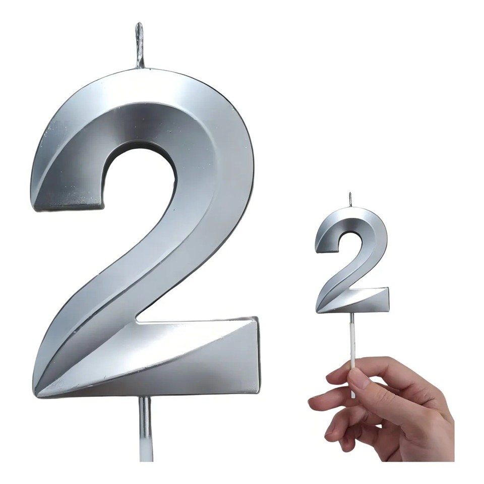 Lumânare Cifră 2,®, Model Diamond, 5 x 3.4 cm, Argintiu