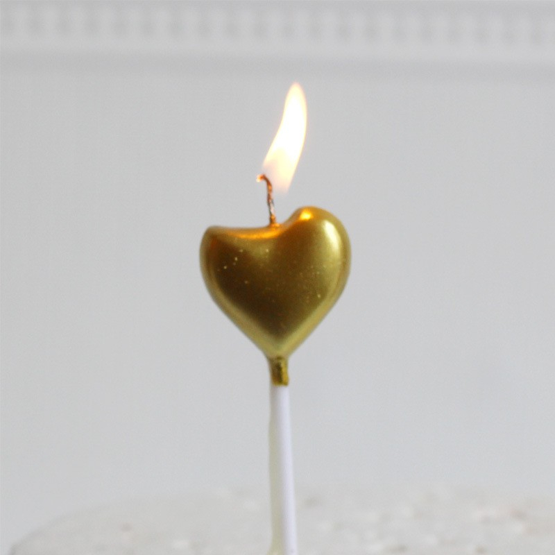 Lumanare de Tort, Model Inima, Party, 8.5 x 3 cm, Auriu